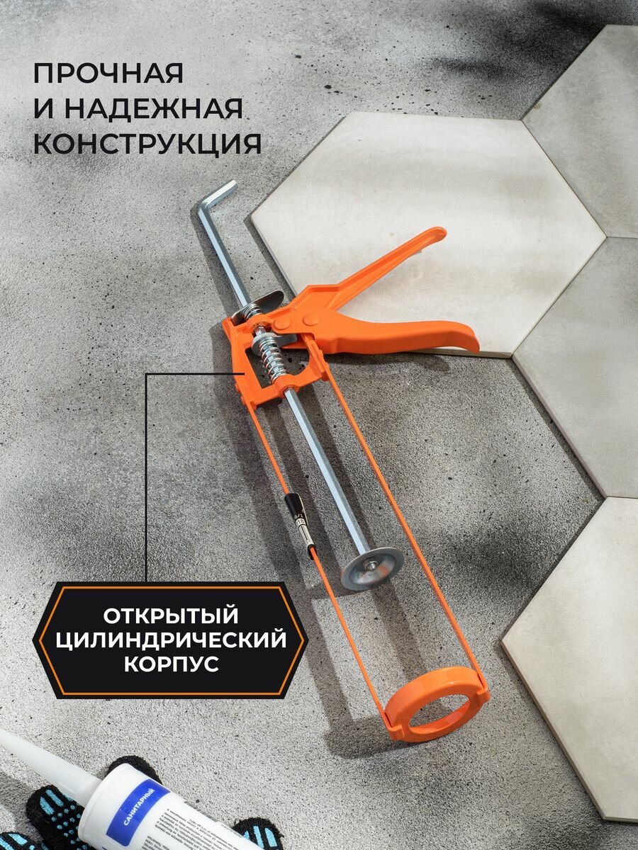 Пистолет для герметика тундра, скелетный, шестигранный шток, 225 мм