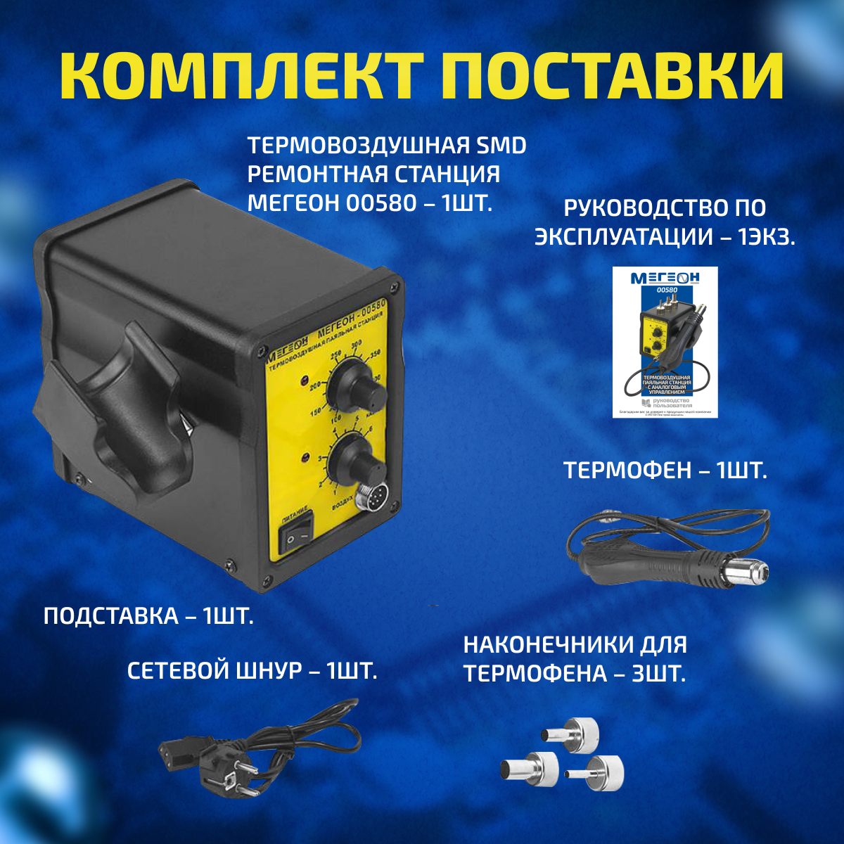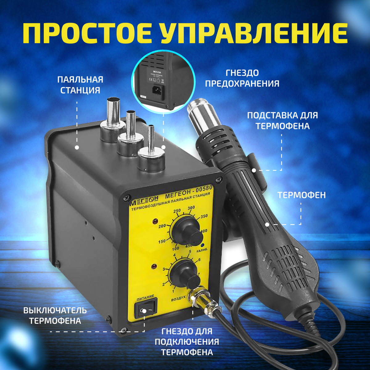 Паяльная станция мегеон 00580 ремонтная SMD термовоздушная