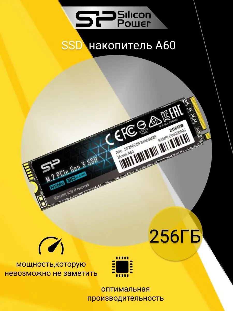 Твердотельный накопитель 256Gb SSD Silicon Power A60 (SP256GBP34A60M28)