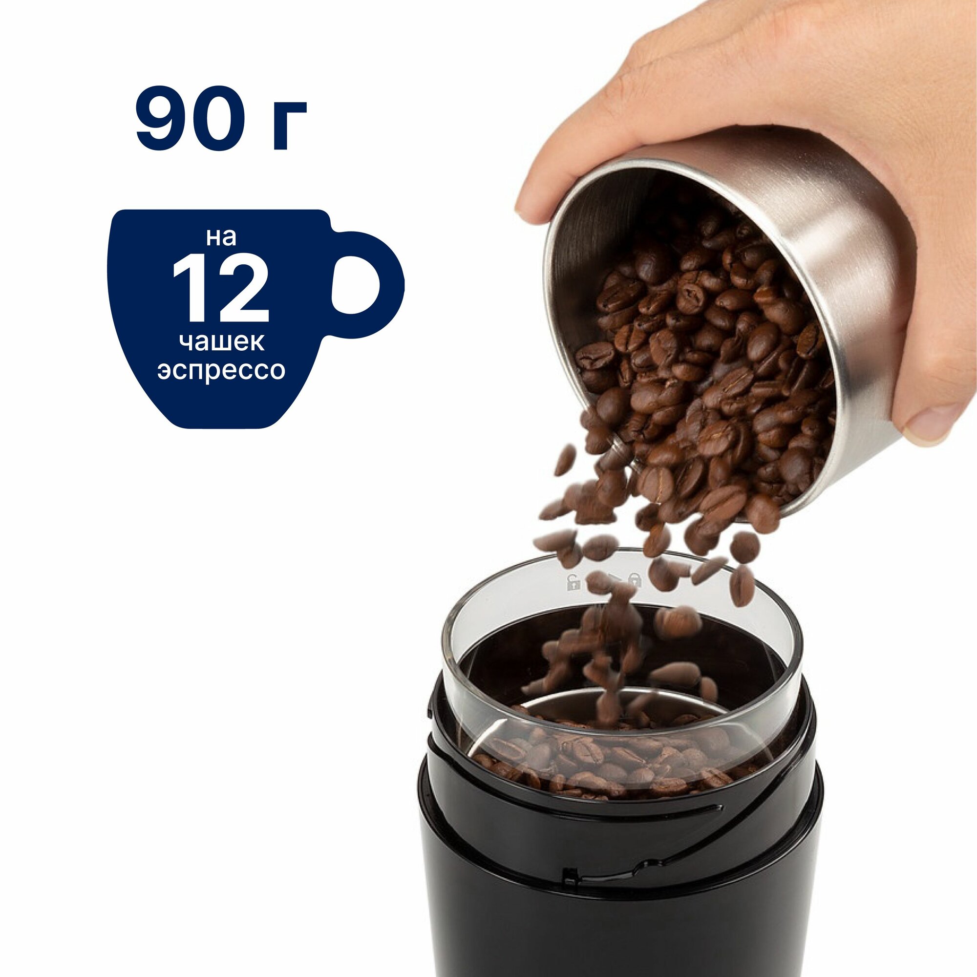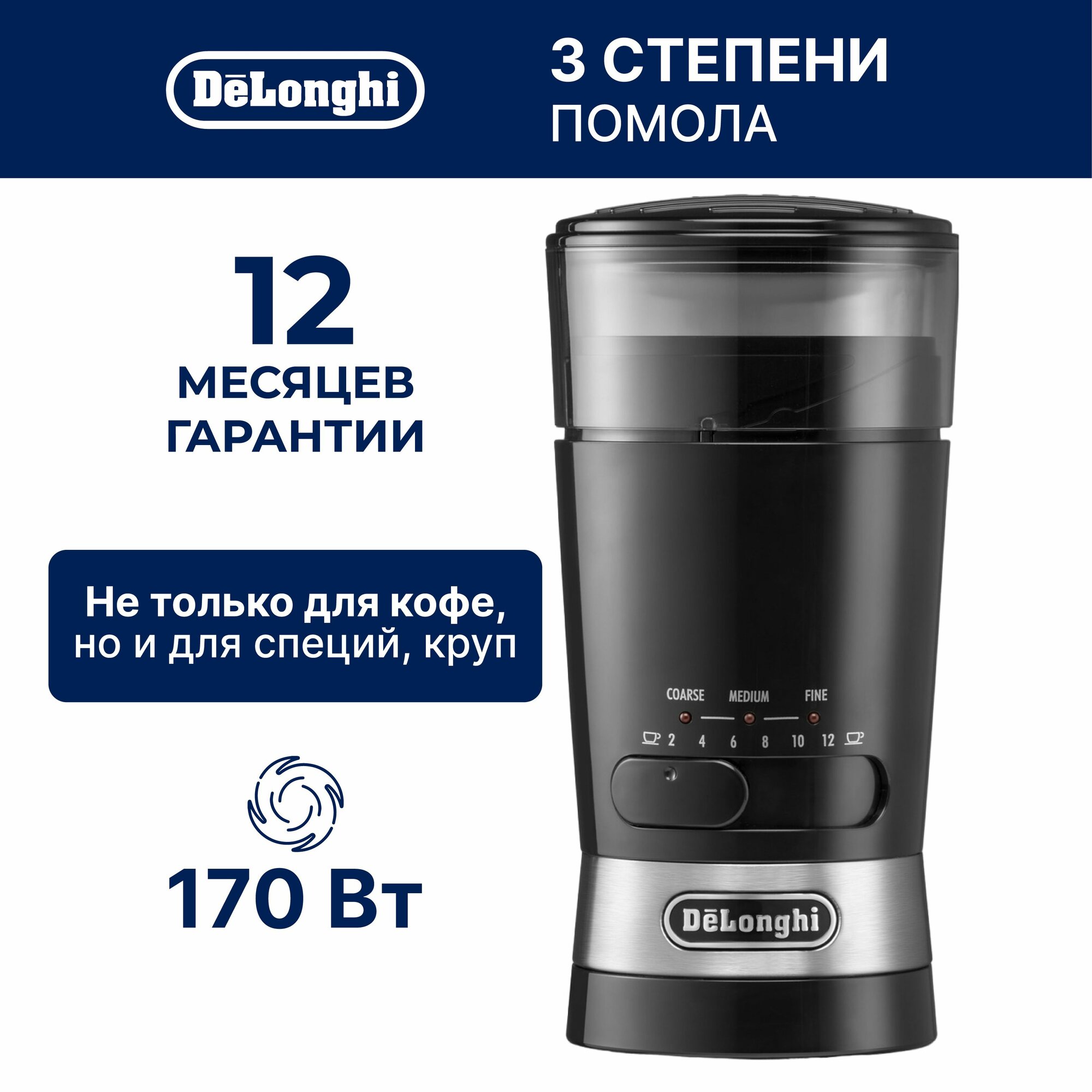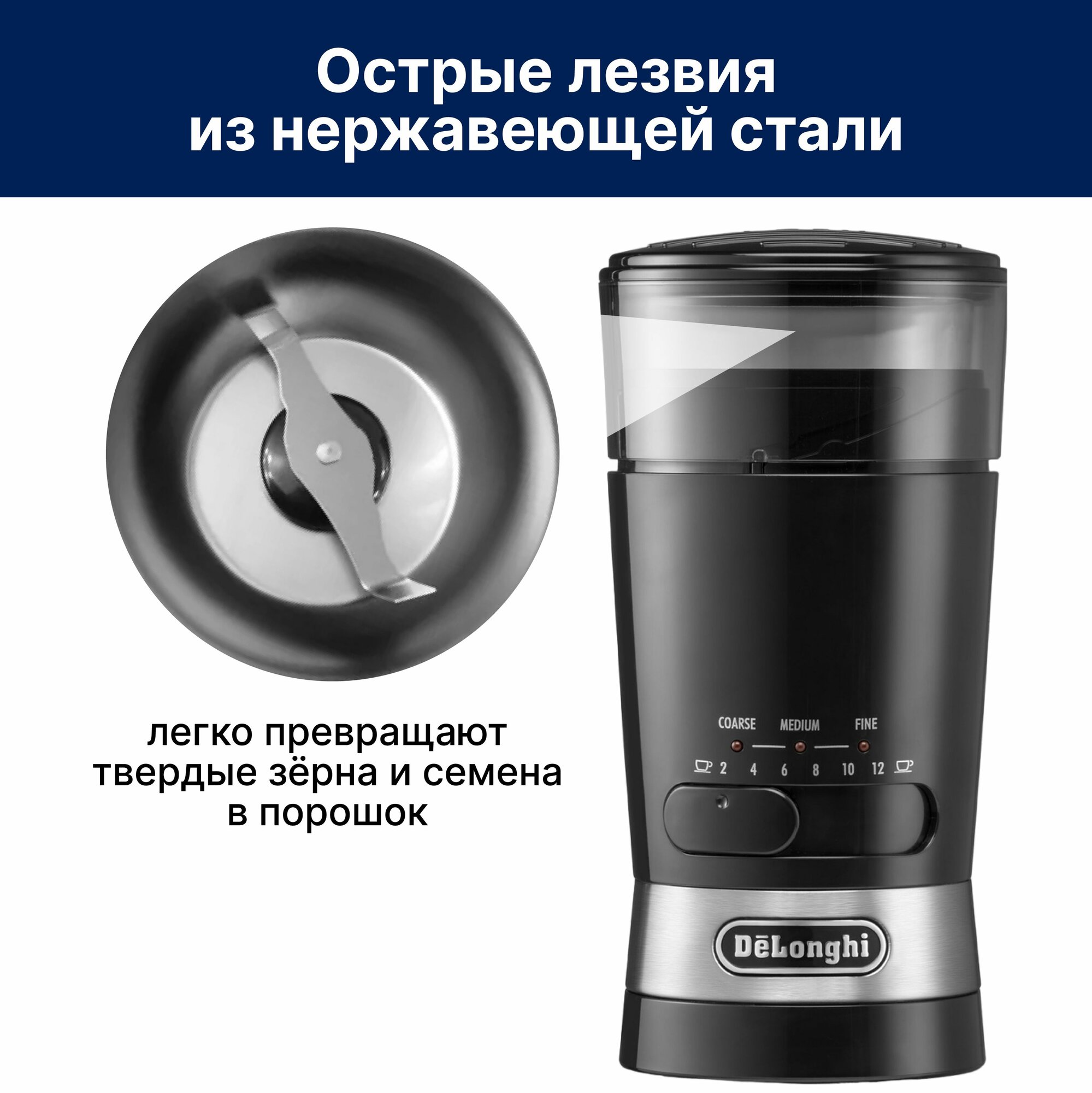 Кофемолка Delonghi KG210 170Вт, 4 степени помола, черная, импульсный режим, ротационный нож.