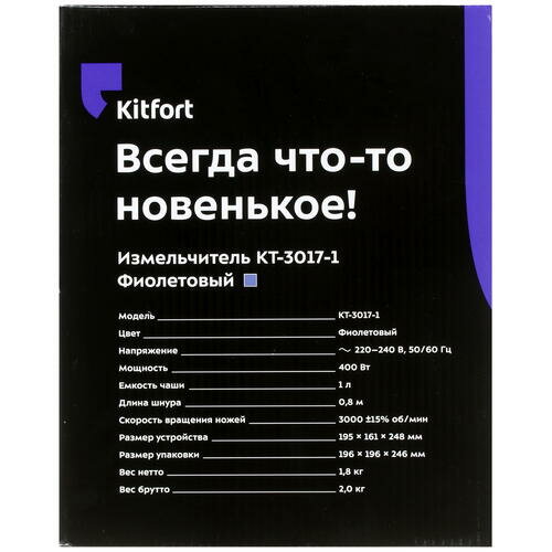 Ниже Вы можете прочитать отзывы на Измельчитель Kitfort КТ-3017-1, фиолетовый, ознакомится с подробными характеристиками, посмотреть интересные обзоры и фотографии на Измельчитель Kitfort КТ-3017-1, фиолетовый.