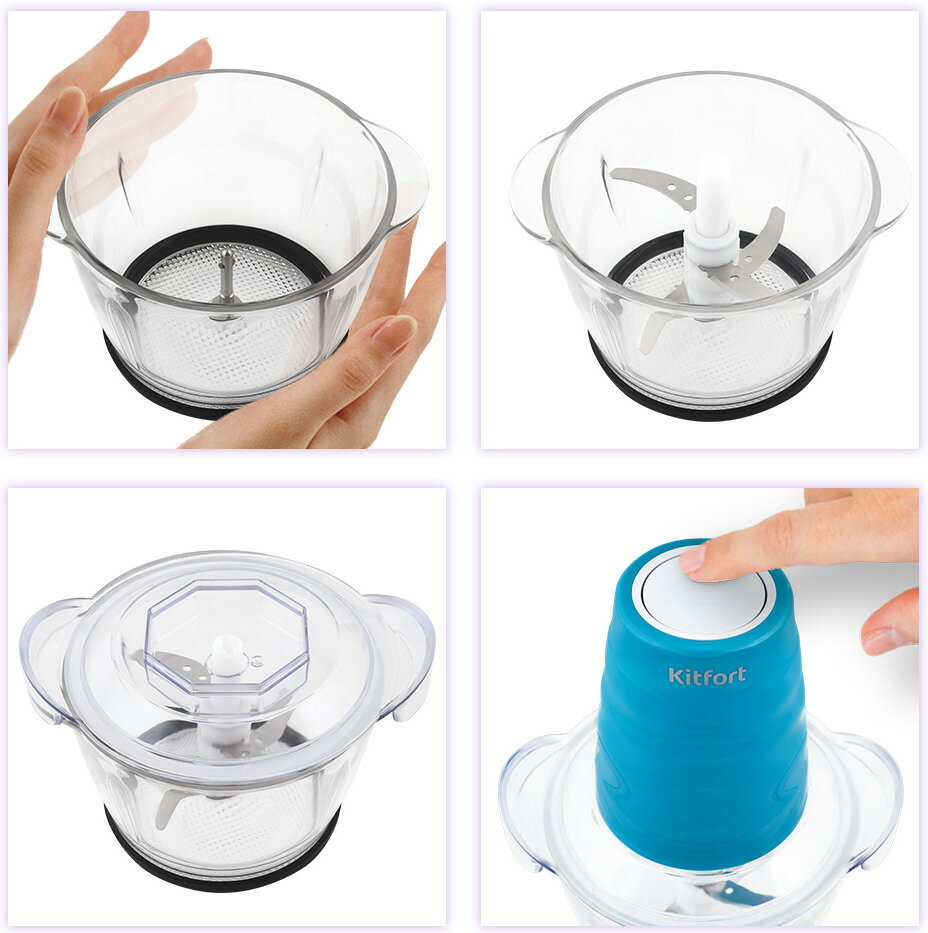 Измельчитель электрический Kitfort КТ-3017-3 1л. 400Вт бирюзовый КТ-3017-3