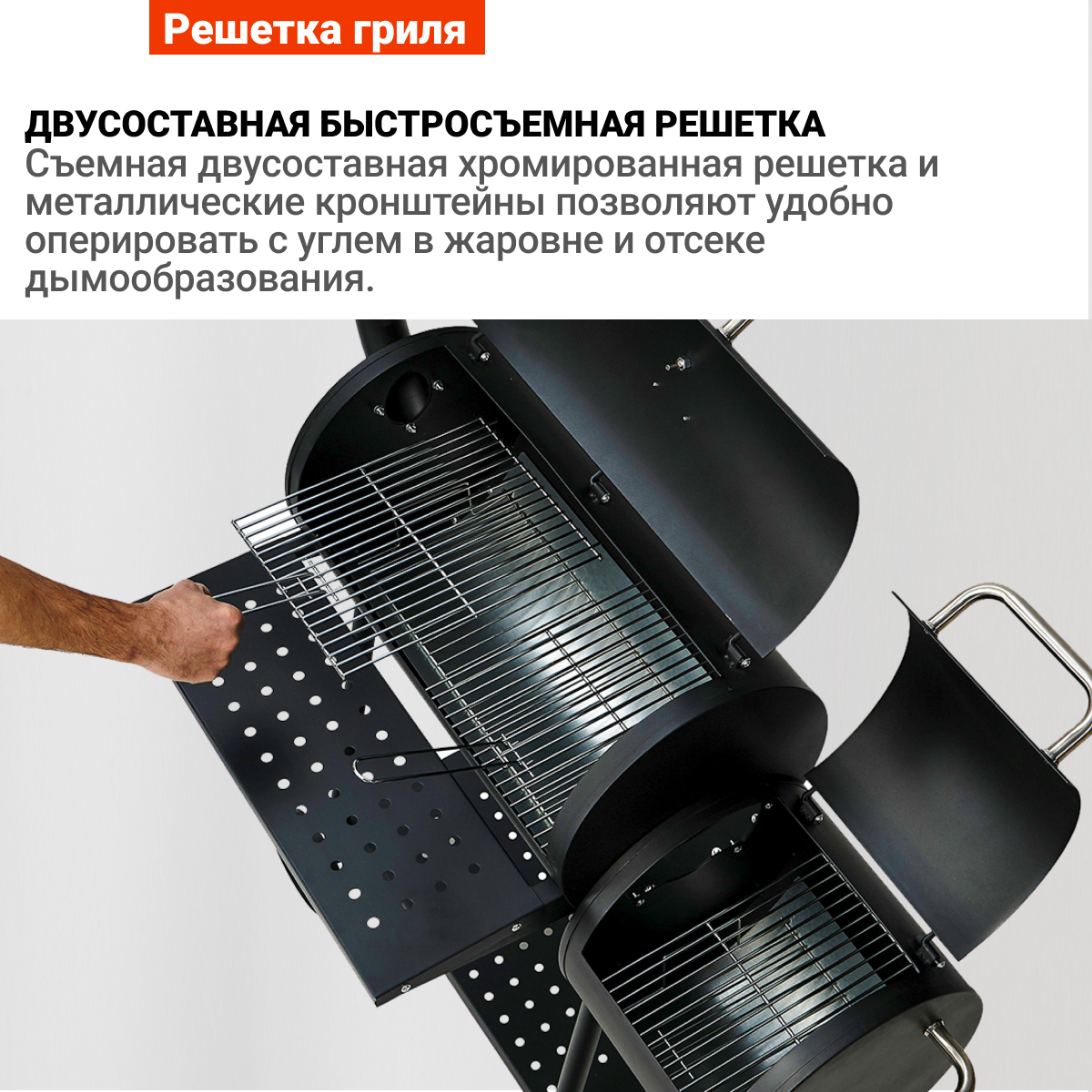 Угольный гриль-бочка с коптильней Go Garden CHEF-Smoker 60