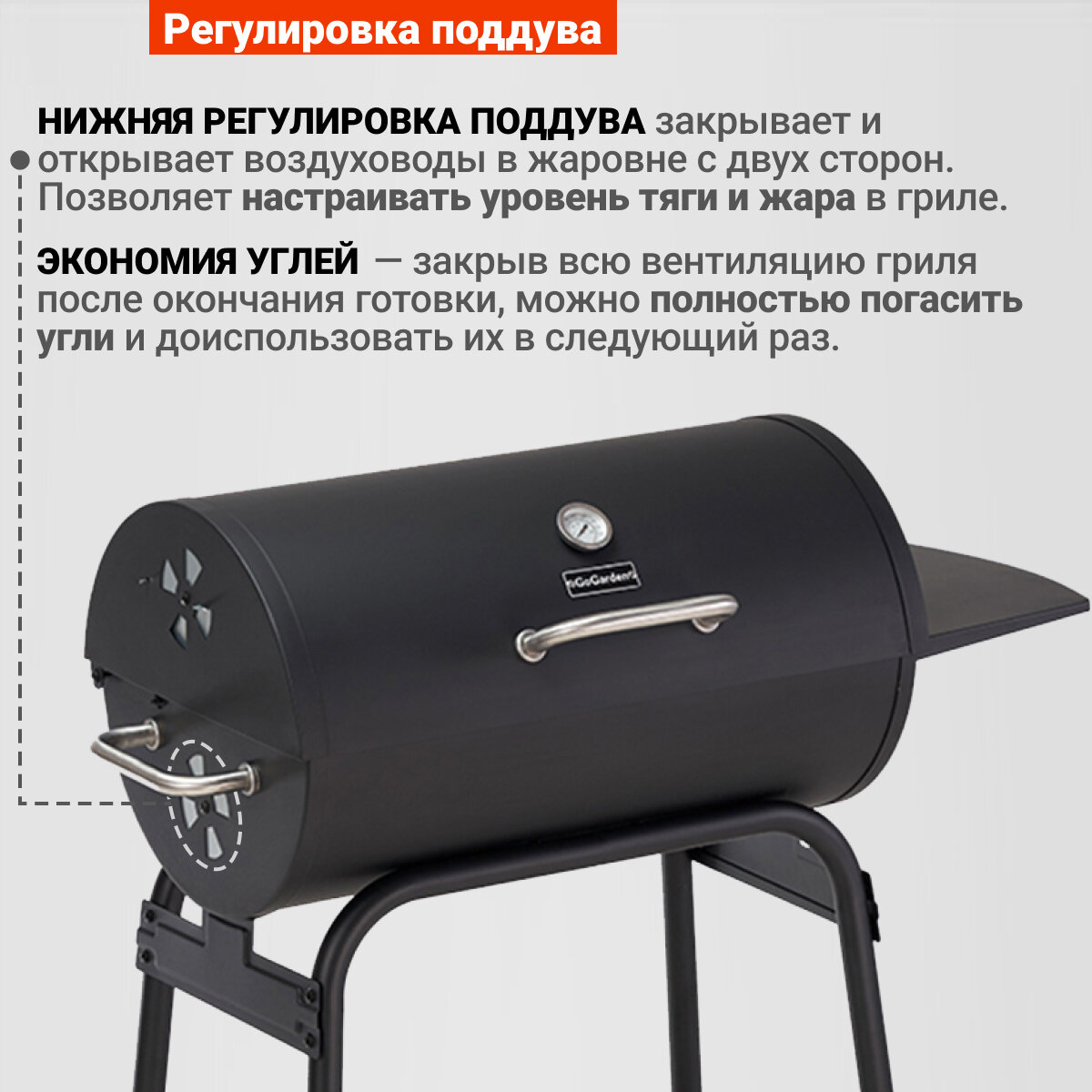 Угольный гриль Go Garden Fiesta 66 Pro, 100х48х104 см, черный интересное: