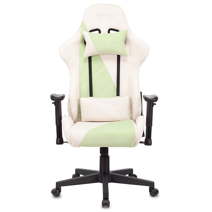 Кресло геймерское ZOMBIE VIKING X Fabric белый/зеленый с подголов. крестовина пластик