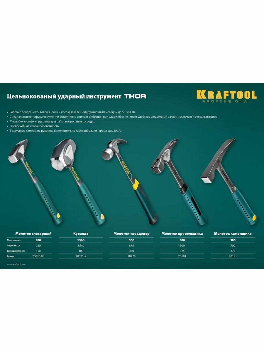 Thor цельнокованный молоток каменщика 600 г, Kraftool .