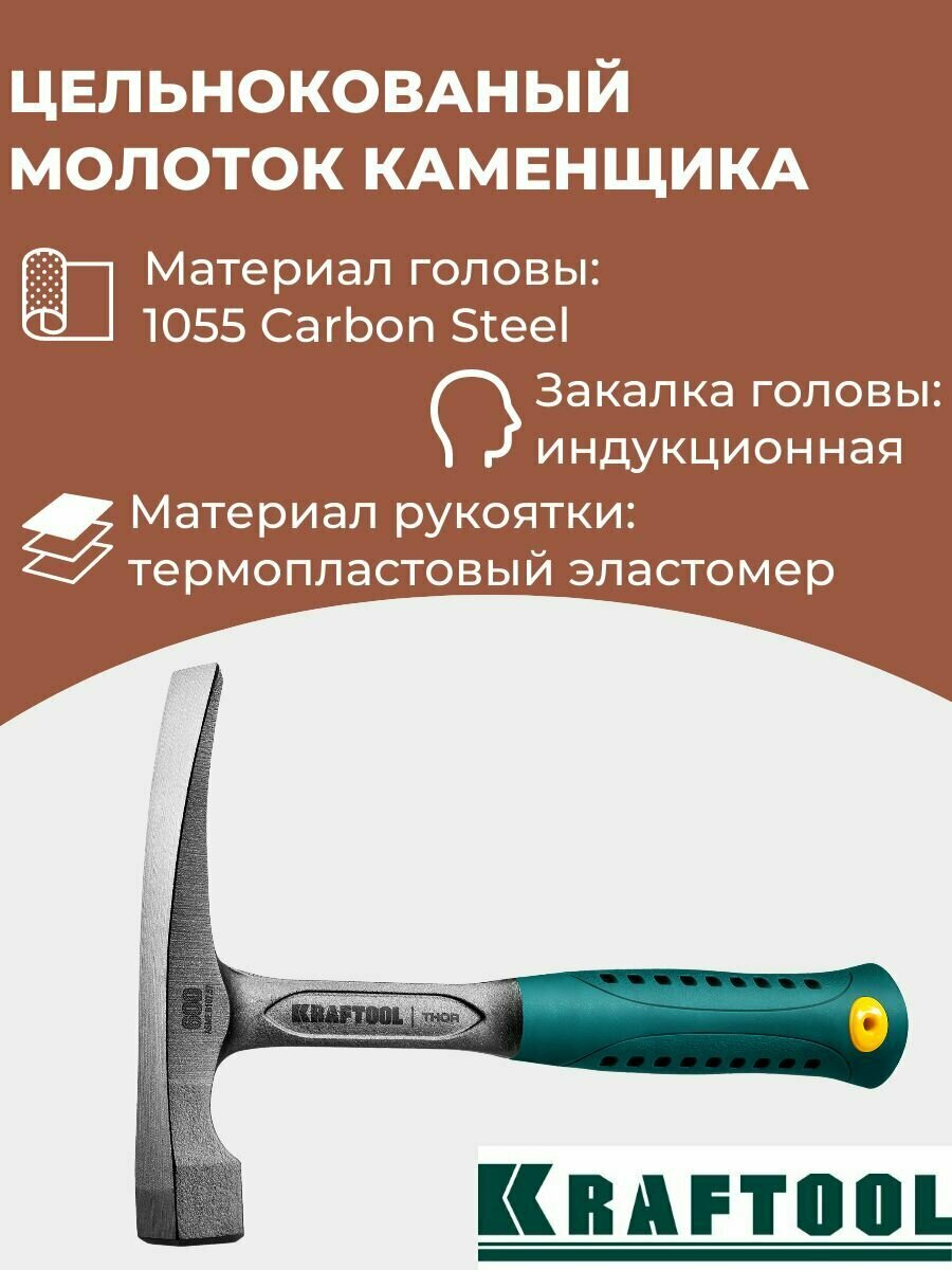 KRAFTOOL Thor 600 г, Цельнокованый молоток каменщика (20191)