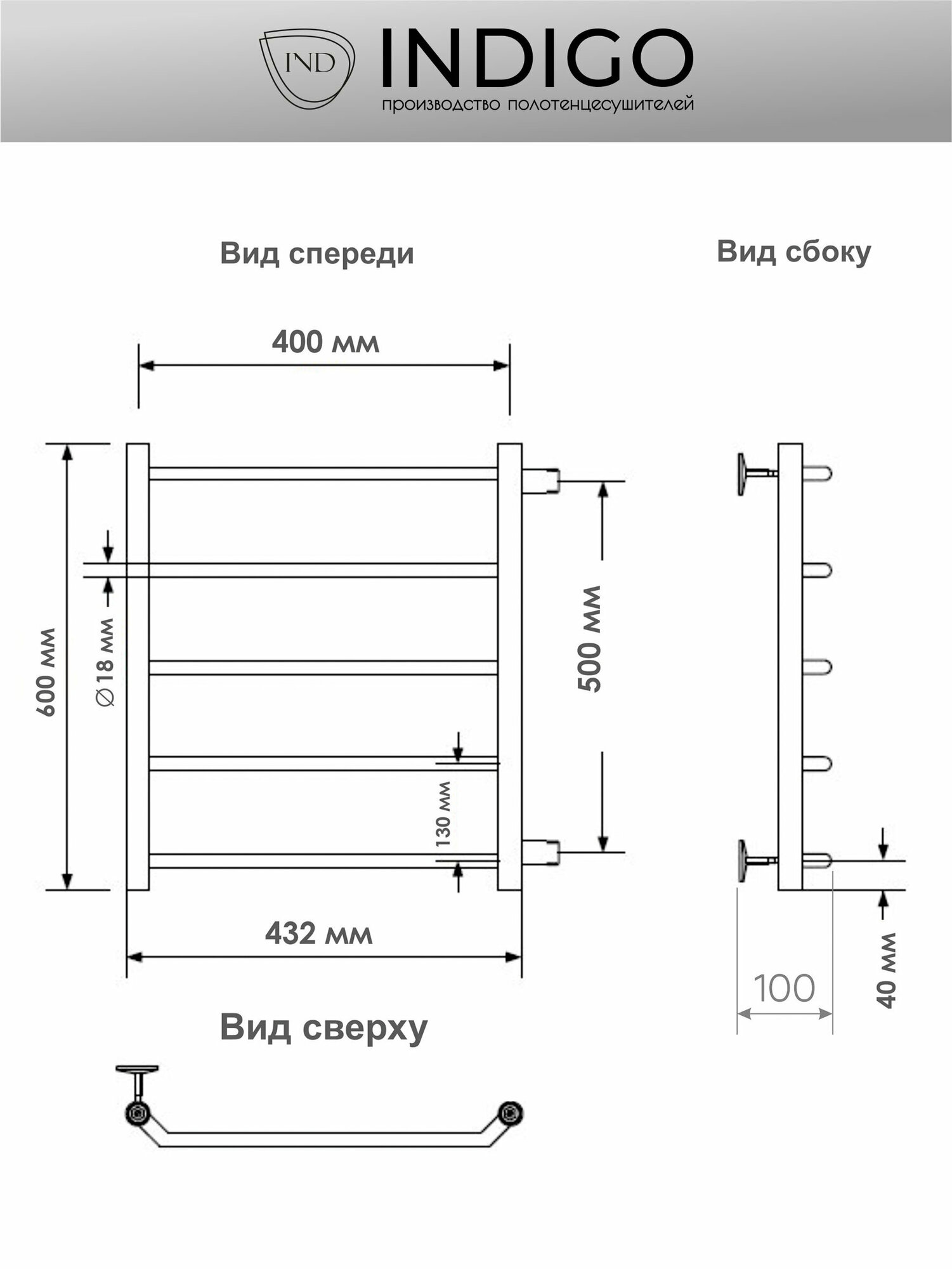 Полотенцесушитель водяной INDIGO Roof 60/40 боковое подключение, межосевое расстояние 50