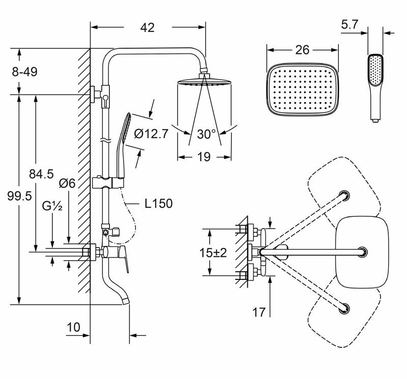 | Дополнительная информация | размер верхнего душа 26x19 см, размер лейки 12,7x 5,7 см, вылет верхнего душа 42 см, материал шланга поливинилхлорид; защита от перекручивания; дополнительные функции - легкое очищение |