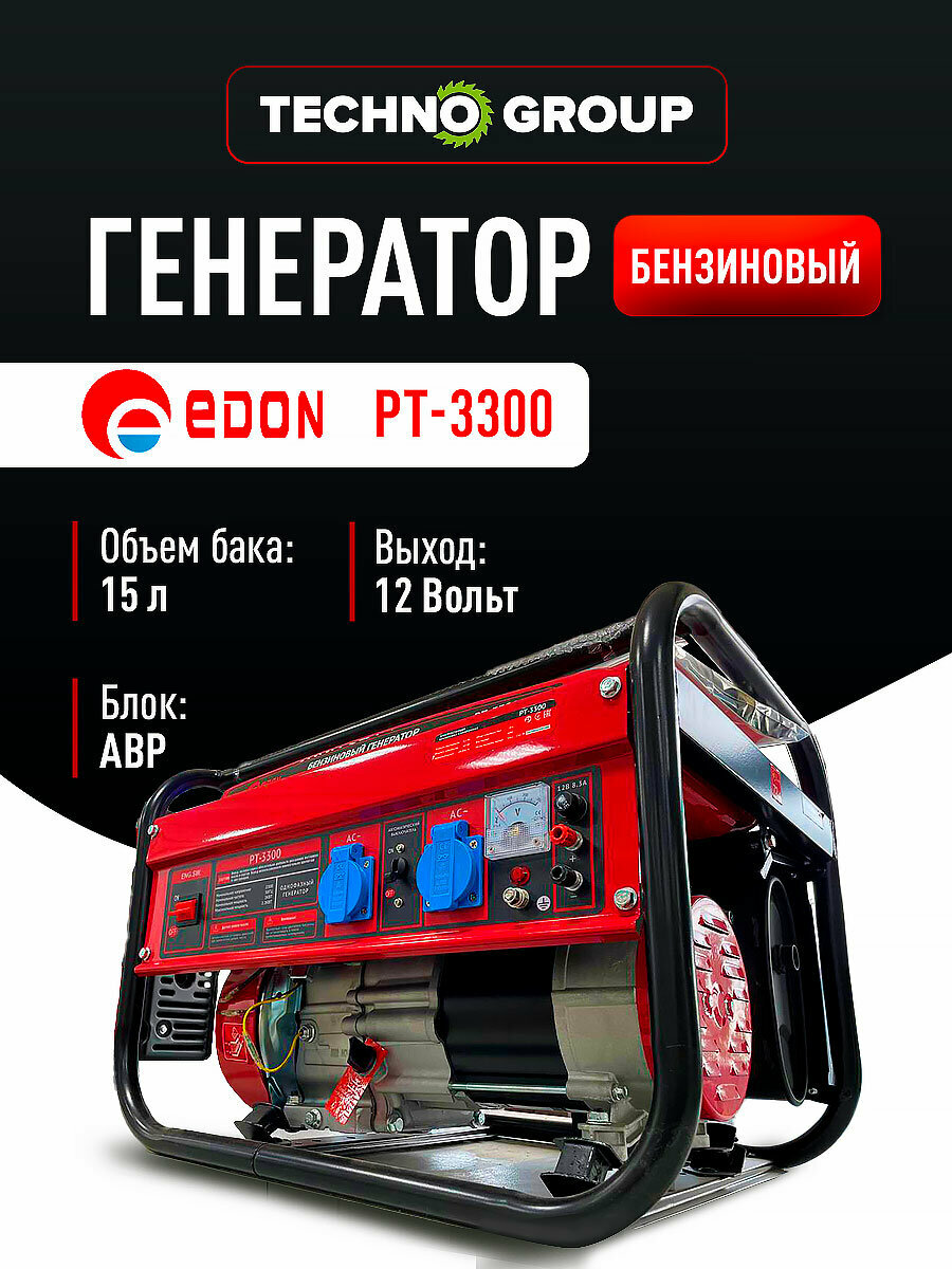 Бензиновый генератор EDON PT-3300, 3000/3300Вт, однофазный, 15 л