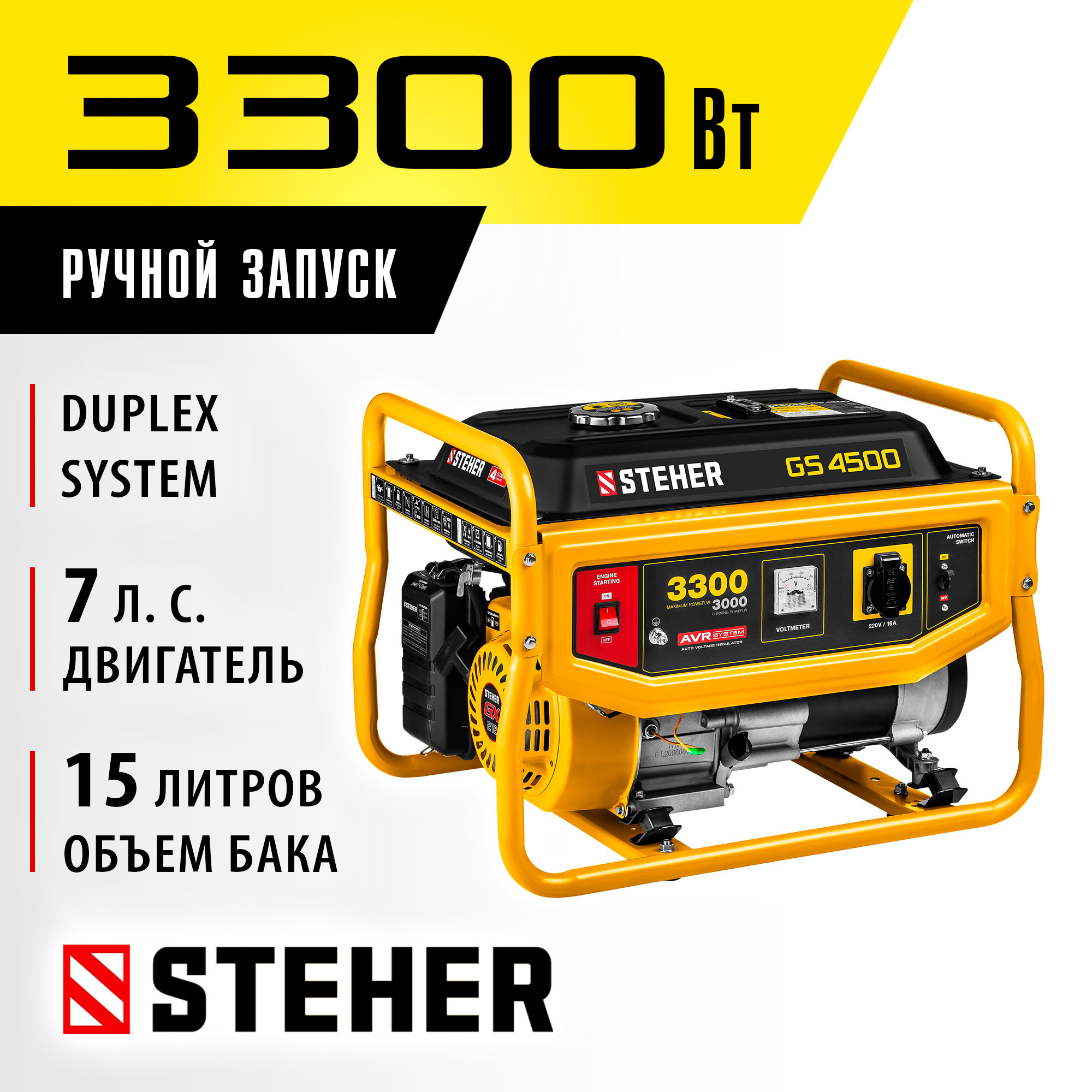GS-4500 бензиновый генератор, 3300 Вт, STEHER