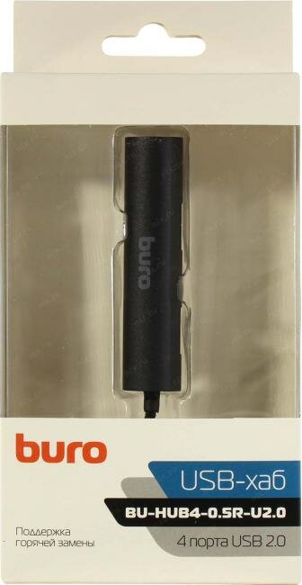 Разветвитель USB 2.0 Buro BU-HUB4-0.5R-U2.0 4порт. черный BU-HUB4-0.5R-U2.0