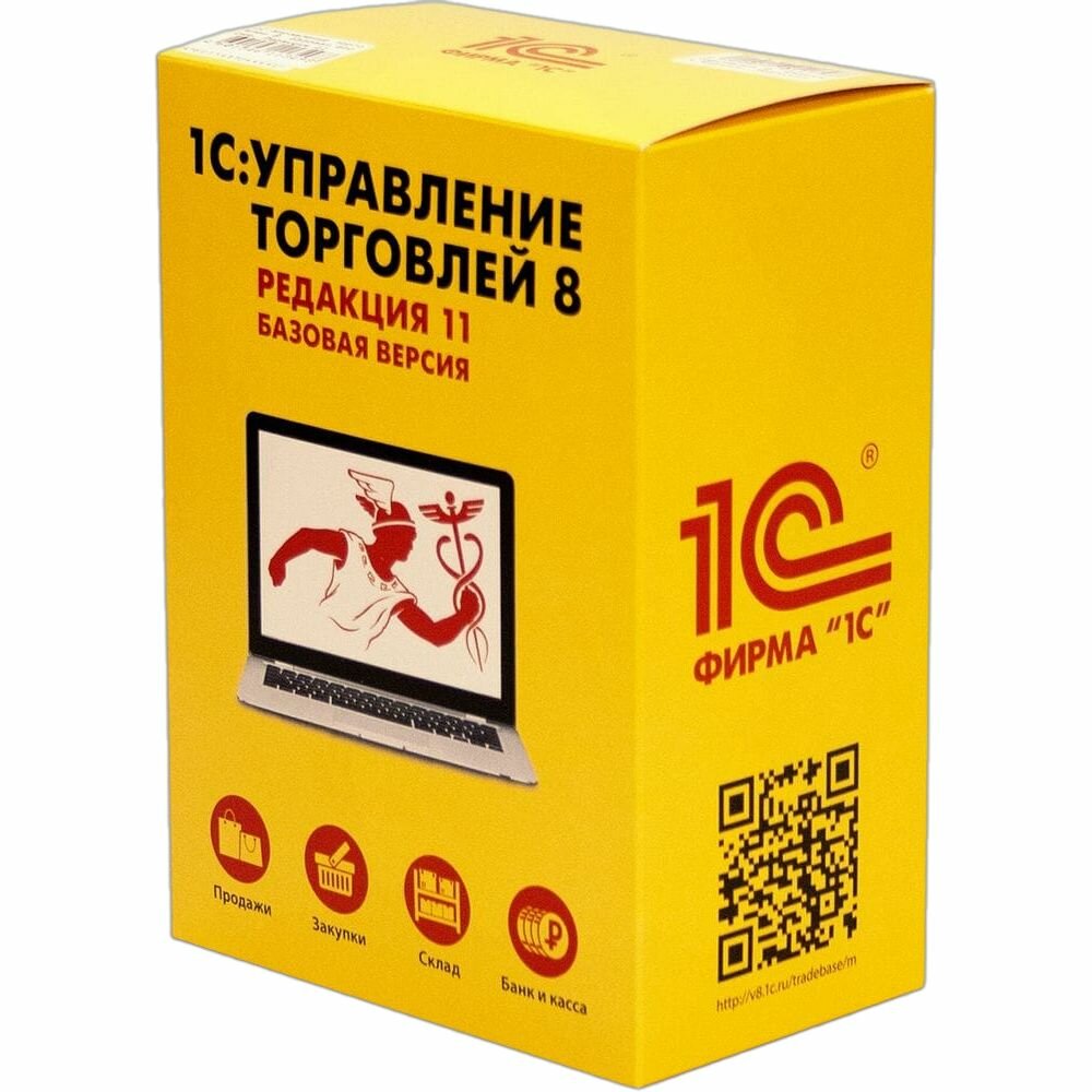 1С Управление торговлей 8. Базовая версия. Редакция 11, коробочная версия с диском, русский, количество пользователей/устройств: 1 п., бессрочная