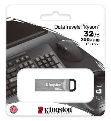 Флешка Kingston DataTraveler Kyson 32 ГБ, 1 шт., серебристый