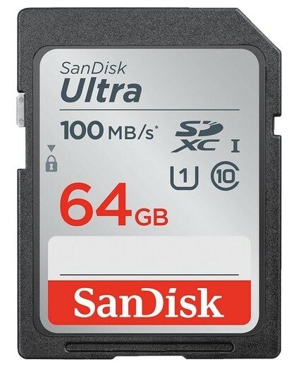 Карта памяти SDXC UHS-I Sandisk Ultra 64 ГБ, 100 МБ/с, Class 10, SDSDUNR-064G-GN3IN