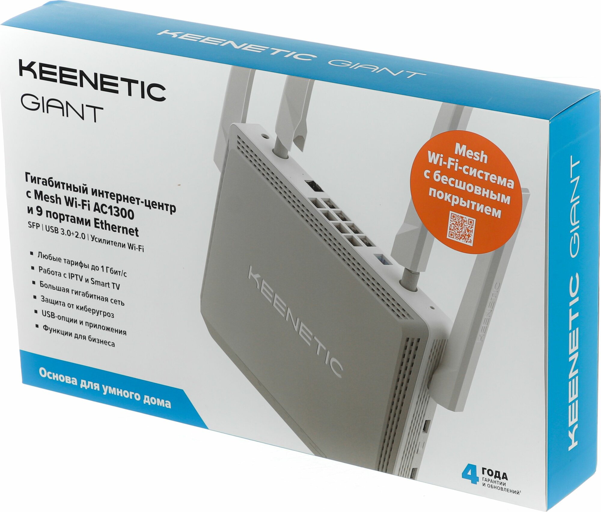 Роутер беспроводной Keenetic Giant (KN-2610) Mesh Wi-Fi AC1300, , 9-портовым коммутатором Smart Pro, портами SFP, USB 3.0 и 2.0