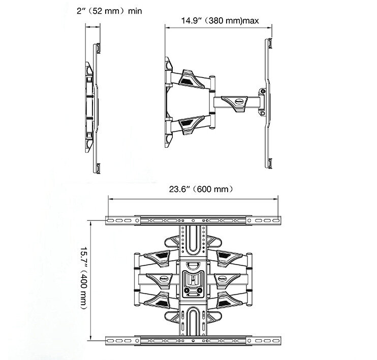 Кронштейн для ТВ диагональ 32"-60" P5 L400- наклонно-поворотный, чёрный