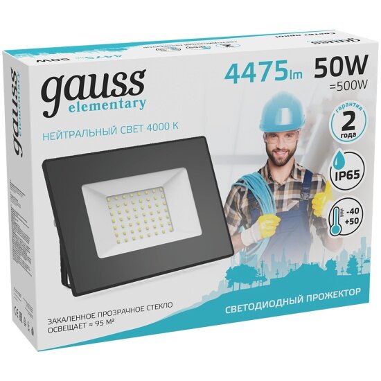 Ниже Вы можете прочитать отзывы на Прожектор Gauss Elementary 50W 4475lm IP65 4000К черный 1/10, ознакомится с подробными характеристиками, посмотреть интересные обзоры и фотографии на Прожектор Gauss Elementary 50W 4475lm IP65 4000К черный 1/10.
