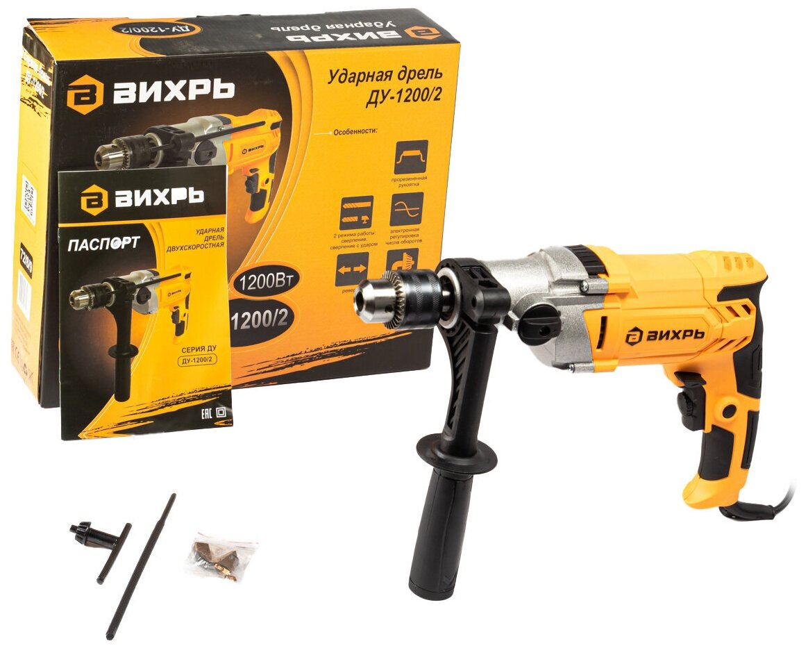Ударная дрель вихрь ДУ-1200/2, 1200 Вт оранжевый