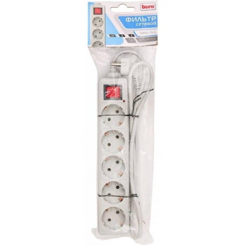 Купить Сетевой фильтр Buro 500SL-1.5-G 1.5м (5 розеток) серый (пакет ПЭ)