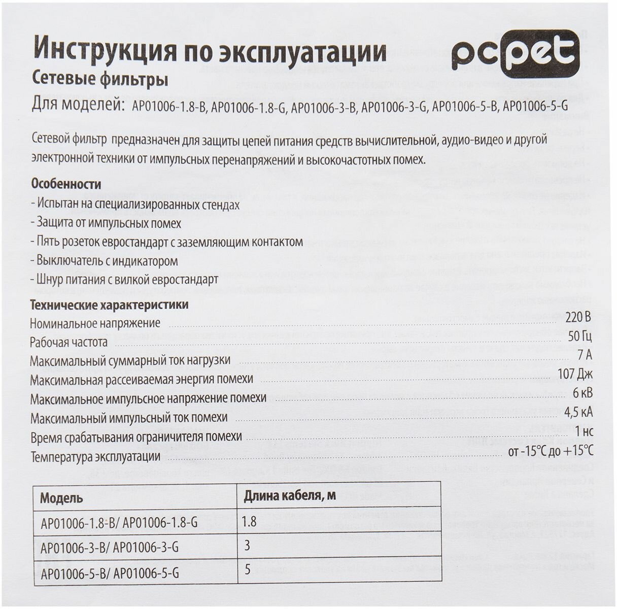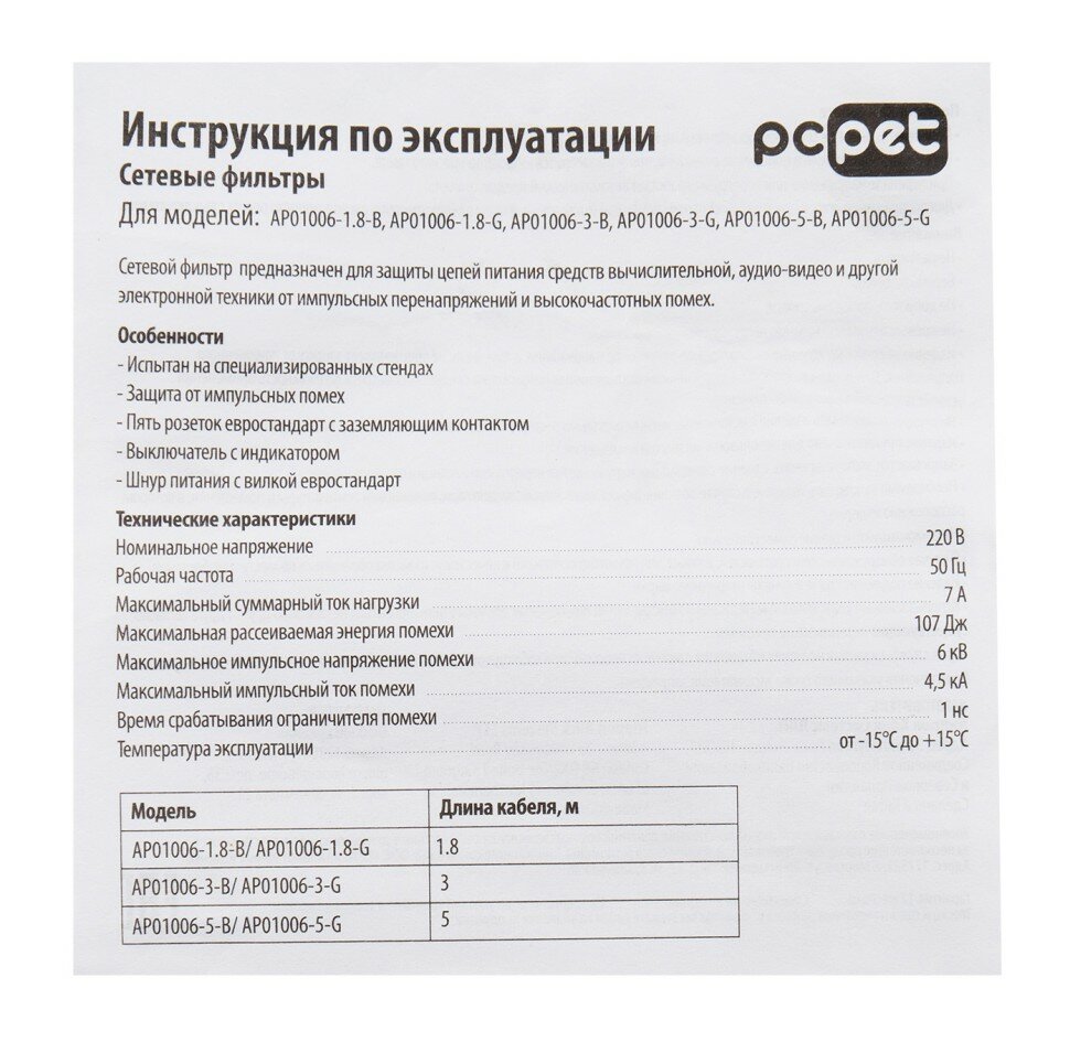 СохранитьСетевой фильтр PC PET AP01006-1.8-B, 1.8м, черный интересное: