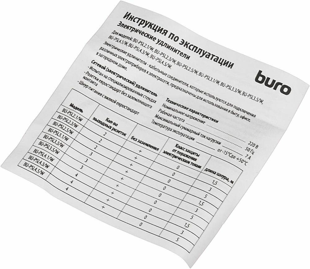 Сетевой удлинитель Buro (BU-PSL2.3/W)