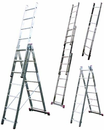 Новая высота Лестница-трансформер 3-х секционная 3×7 ступеней, 3×1,9 м, высота 4,5 м, нагрузка 150 кг, алюминий, новая высота