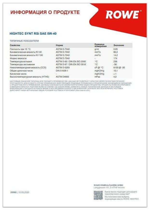 Ниже Вы можете прочитать отзывы на ROWE Масло Моторное Hightec Synt Rs Sae 5W-40 I 20 Л. Acea A3/B4,Api Sn,Renault Rn 0700/0710Api Cf,Psa B71 2296,Opel Gm-Ll-A-..., ознакомится с подробными характеристиками, посмотреть интересные обзоры и фотографии на ROWE Масло Моторное Hightec Synt Rs Sae 5W-40 I 20 Л. Acea A3/B4,Api Sn,Renault Rn 0700/0710Api Cf,Psa B71 2296,Opel Gm-Ll-A-....
