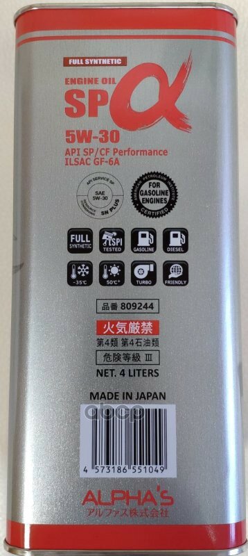 ALPHAS 809244_ПОВРЕЖУПАК Масло моторное 5W-30 4л SP/CF GF-6A (синтетика) 1шт