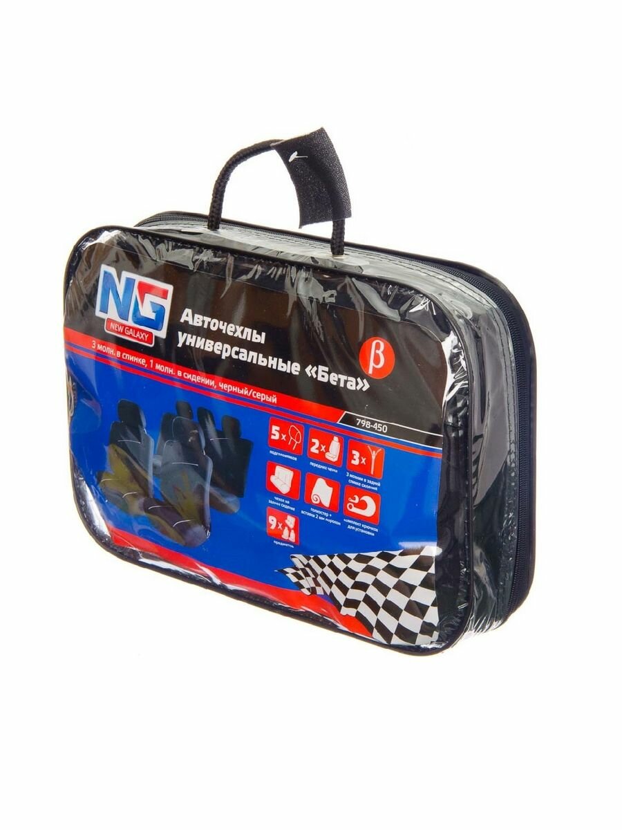 NG Авточехлы 9 пр., полиэстер, Бета, 3 молн. в спинке, 1 молн. в сидении, черный/серый