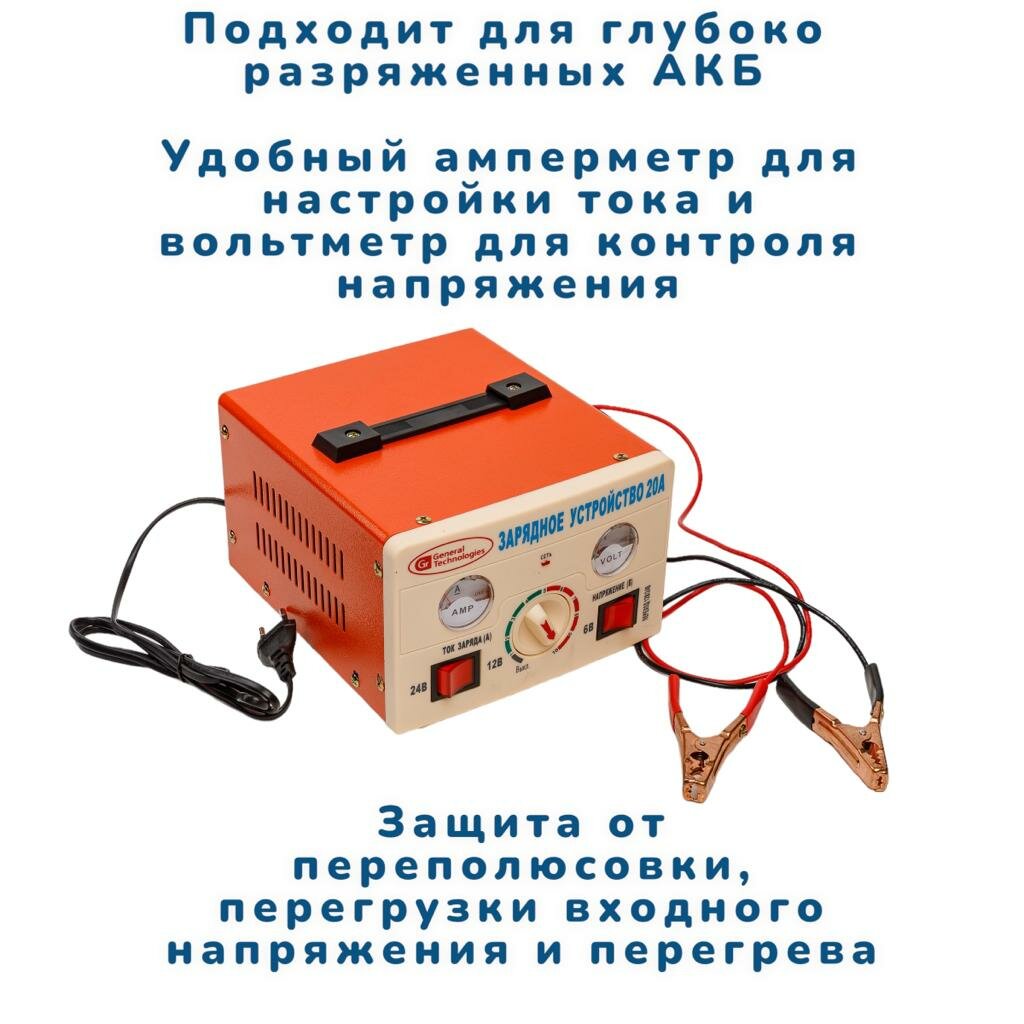 Зарядное Устройство 6/12/24 V (Зу69 )Ток Заряда 0,5 A - 20 A Для Акб От 10 Ah До 190 Ah Трансформаторное "General Technologie...