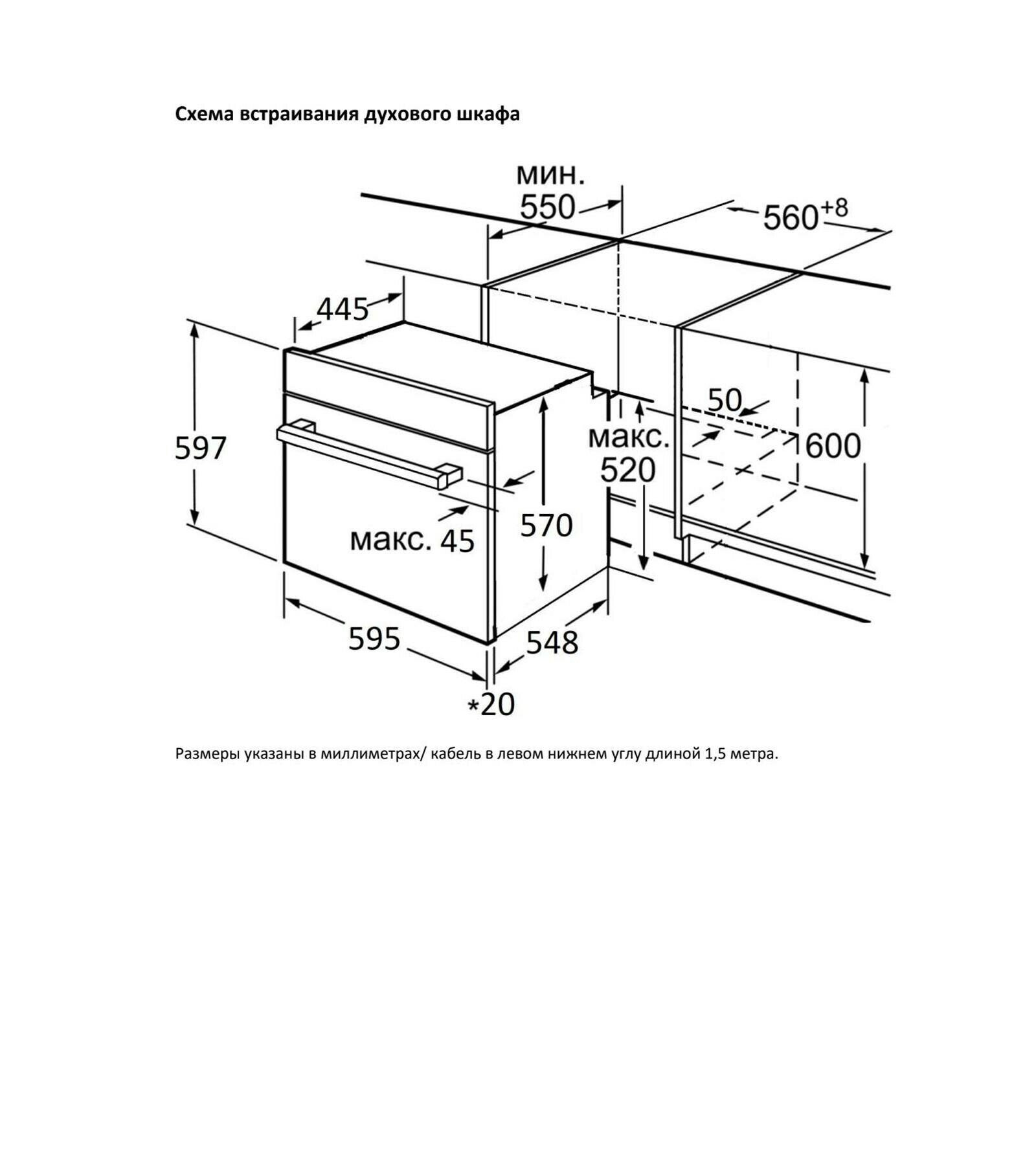 | Режимы нагрева | нижний нагрев, верхний нагрев, верхний нагрев + нижний нагрев, нижний нагрев + конвекция, гриль + конвекция, большой гриль, конвекция |
