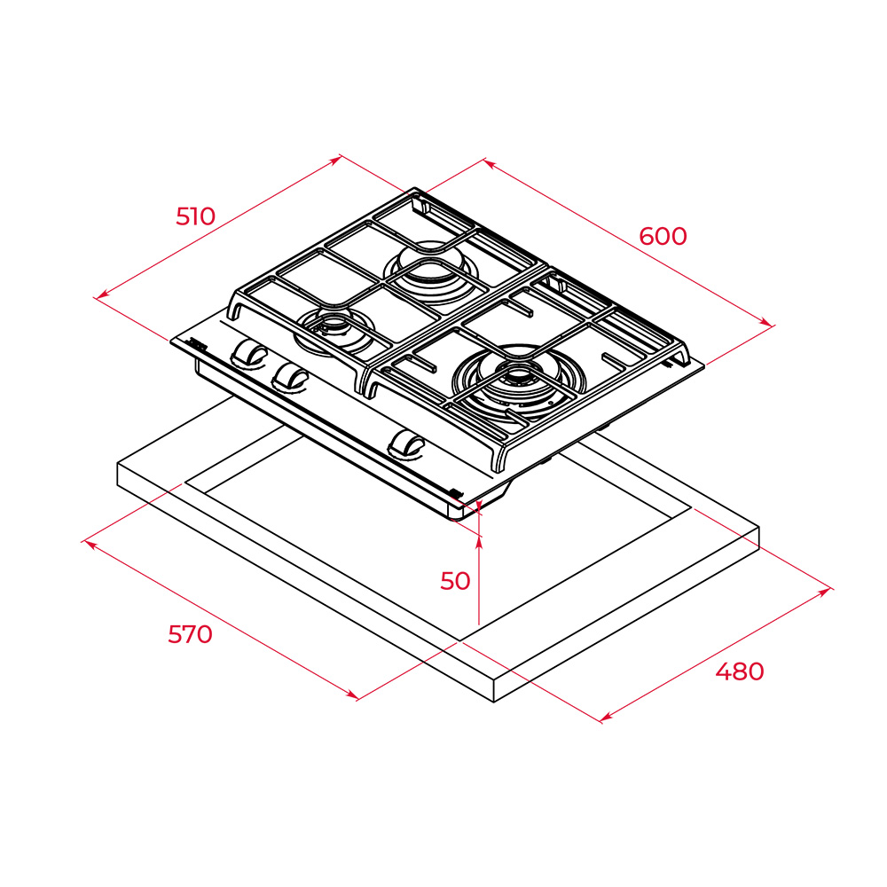 | Общее количество конфорок | 3 |