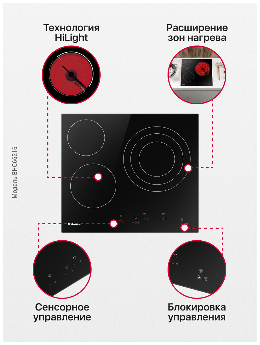 Встраиваемая электрическая варочная панель Hansa BHC66216 черная интересное: