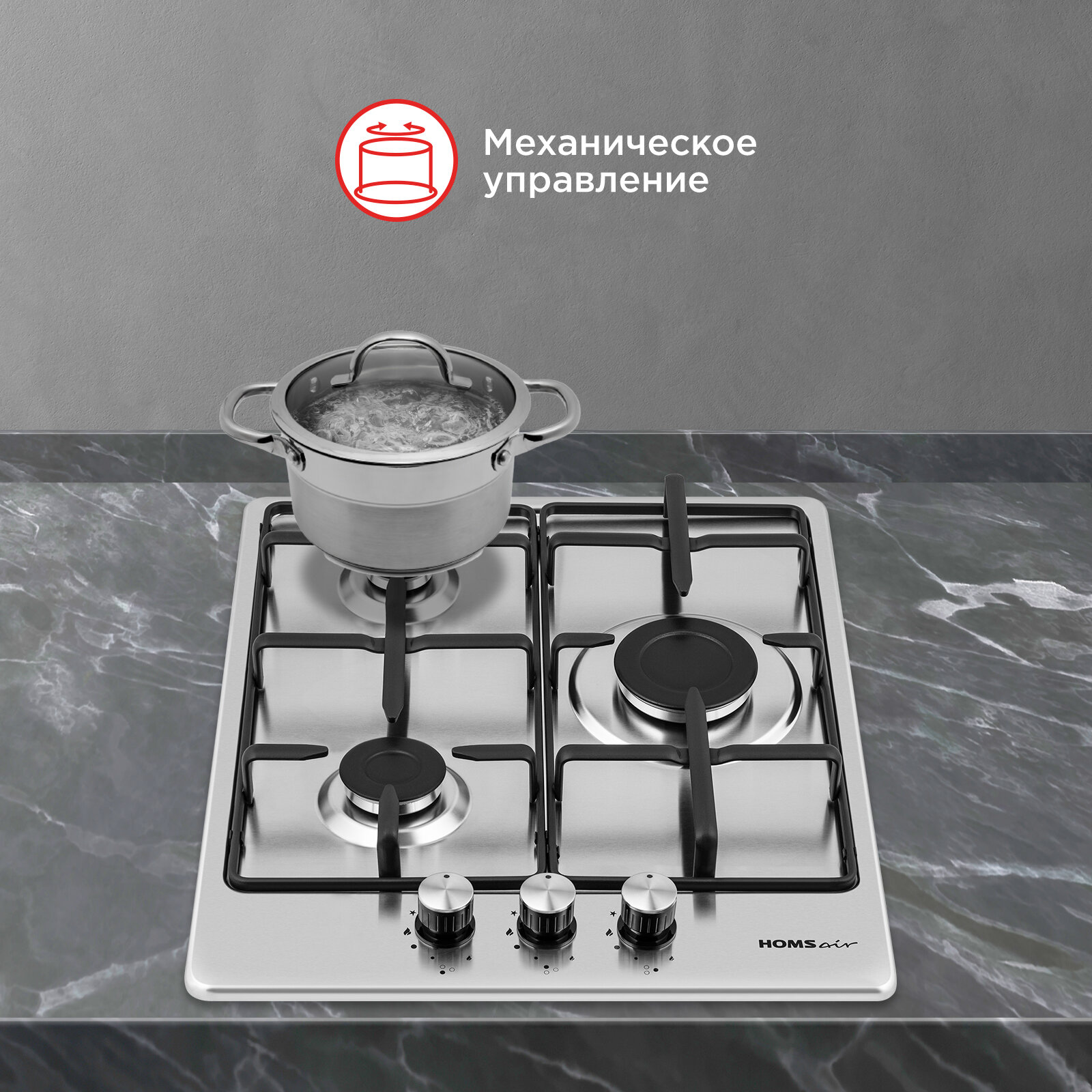 Газовая варочная панель Homsair HGS433S нержавеющая сталь