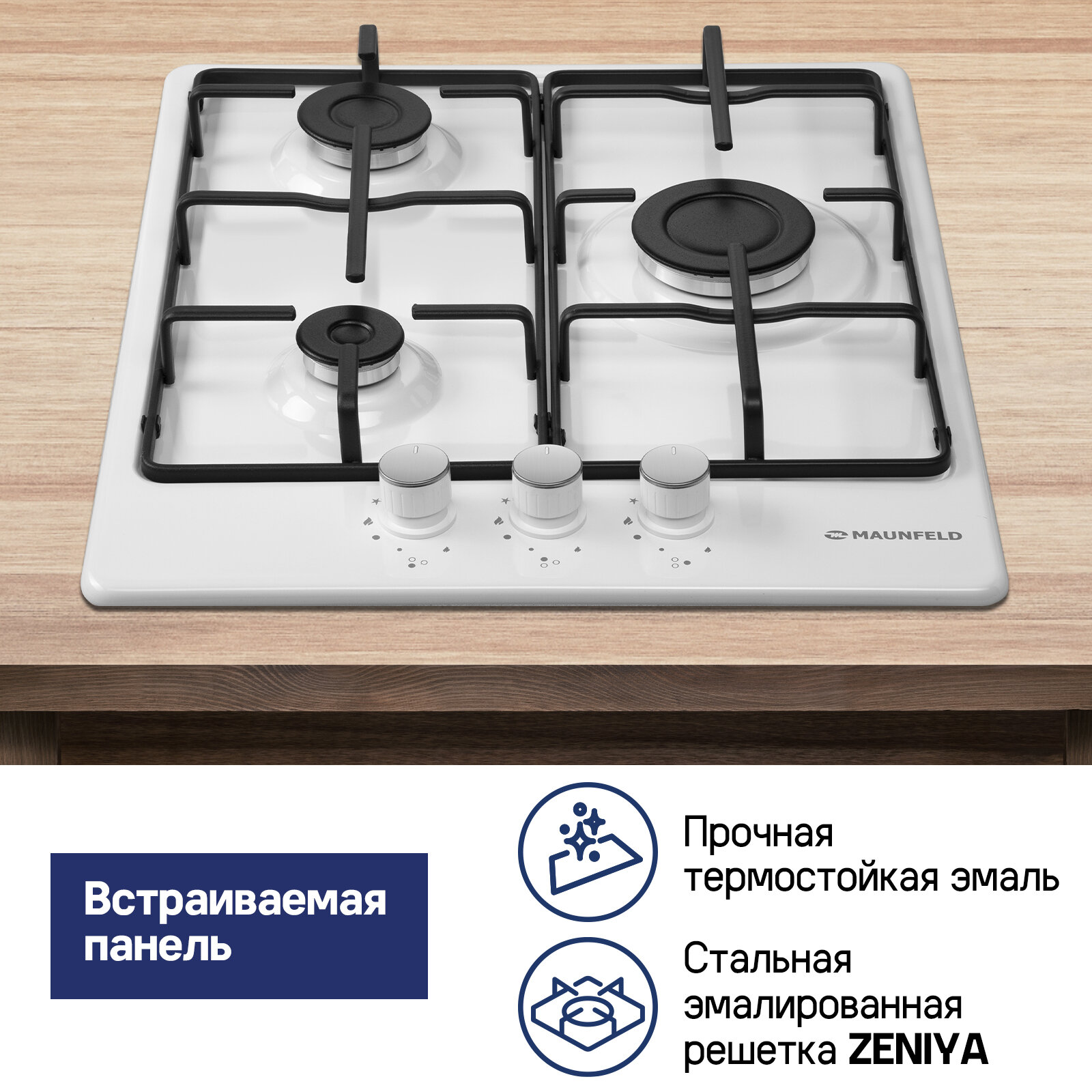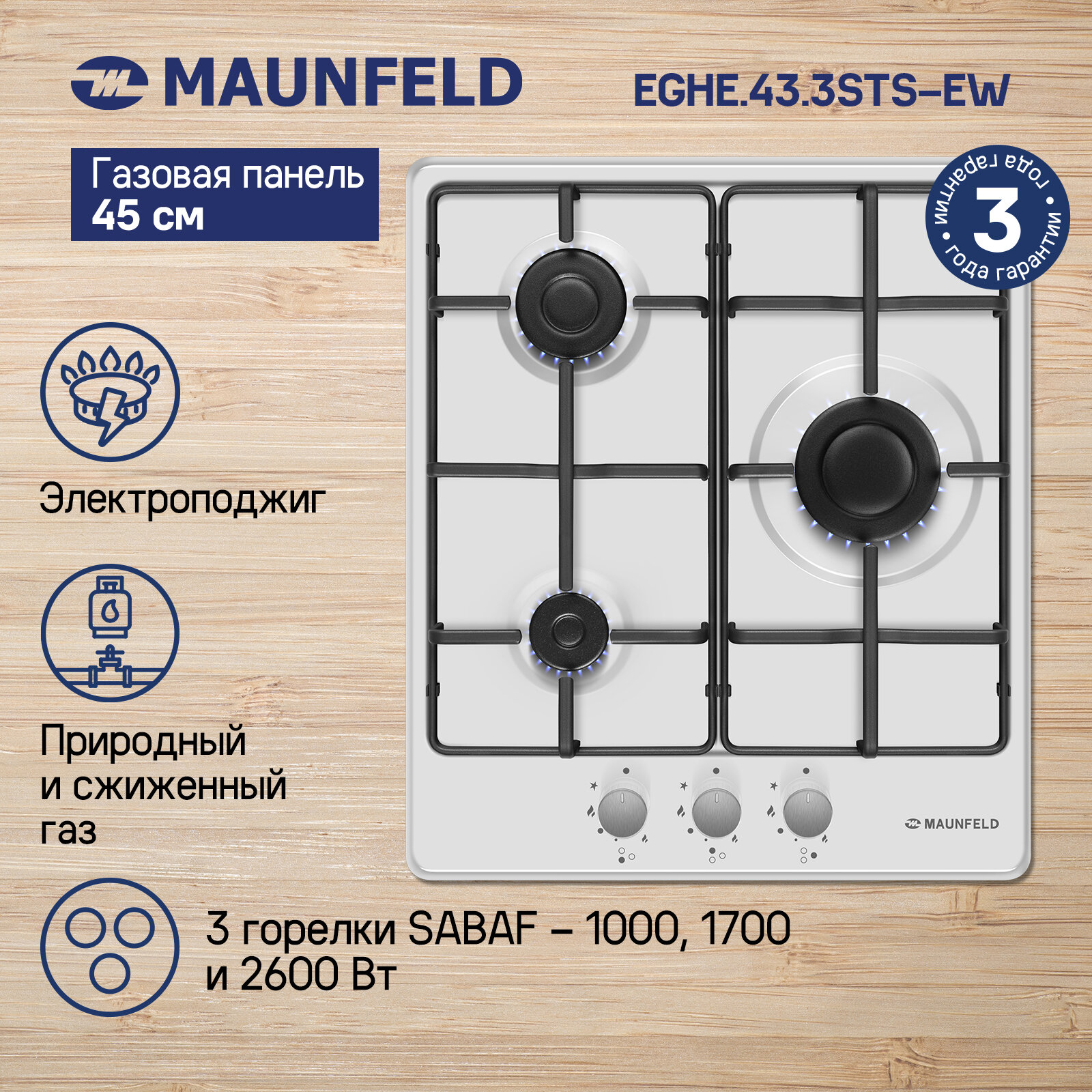 Встраиваемая газовая панель MAUNFELD EGHE.43.3STS-EW