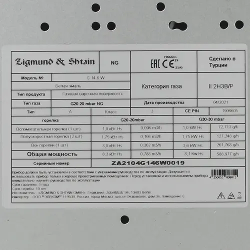 Газовая варочная поверхность Zigmund Shtain G 14.6 W интересное: