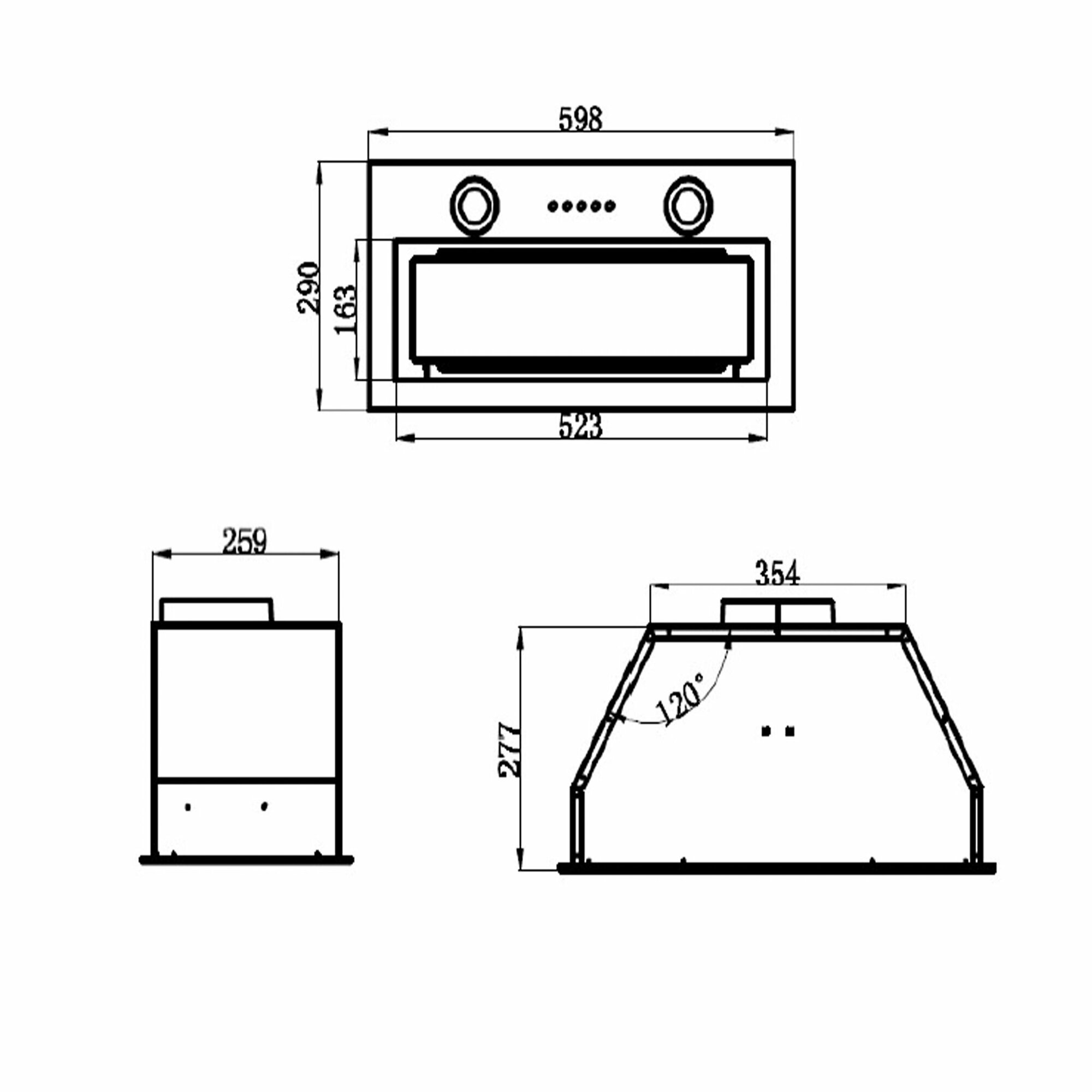 Кухонная вытяжка MAUNFELD TRAPEZE 602M черный полновстраиваемая, 54 дБ, 222Вт, 1150 м3/ч, ширина 60 см