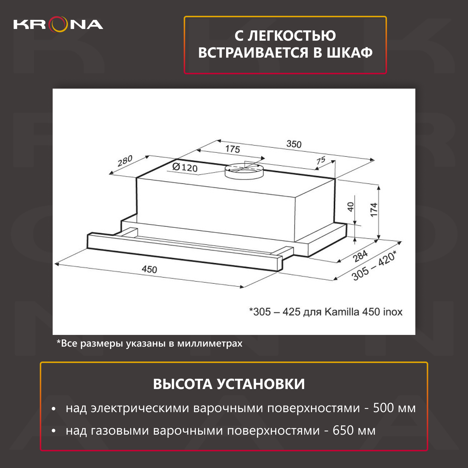 Встраиваемая вытяжка Krona Kamilla 450 черный (ка-00001799)