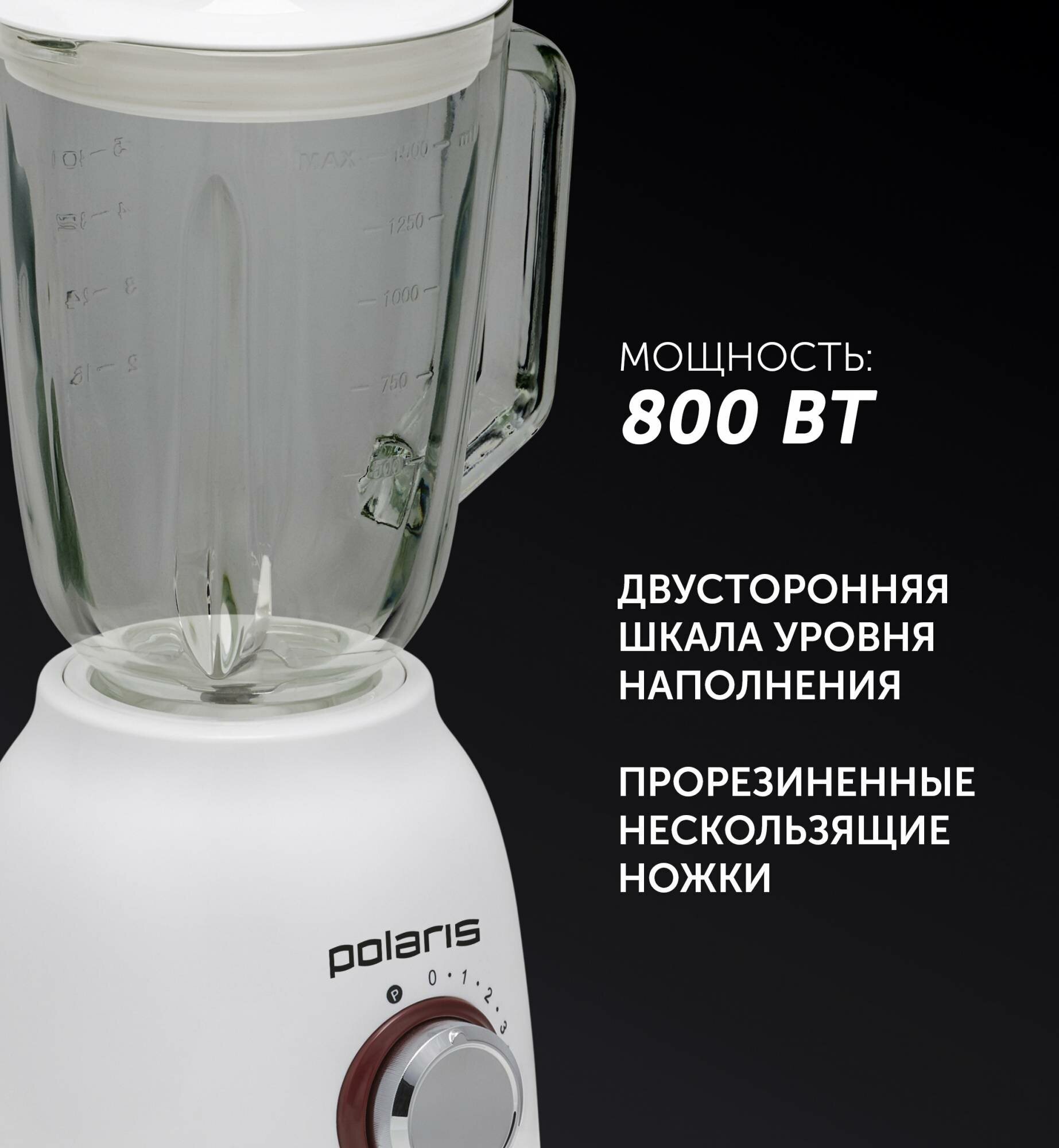 Блендер Polaris 0821G, стационарный, 800 Вт, 1.5 л, 4 скорости, импульсный режим, белый Polaris 9661