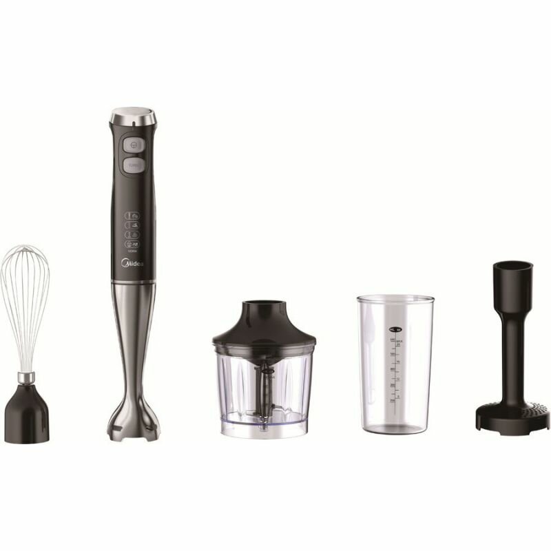 Блендер погружной Midea MC-BL503, 1200 Вт, 4 насадки, насадка для пюре, турборежим, плавная регулировка скорости, нержавеющая сталь, черный