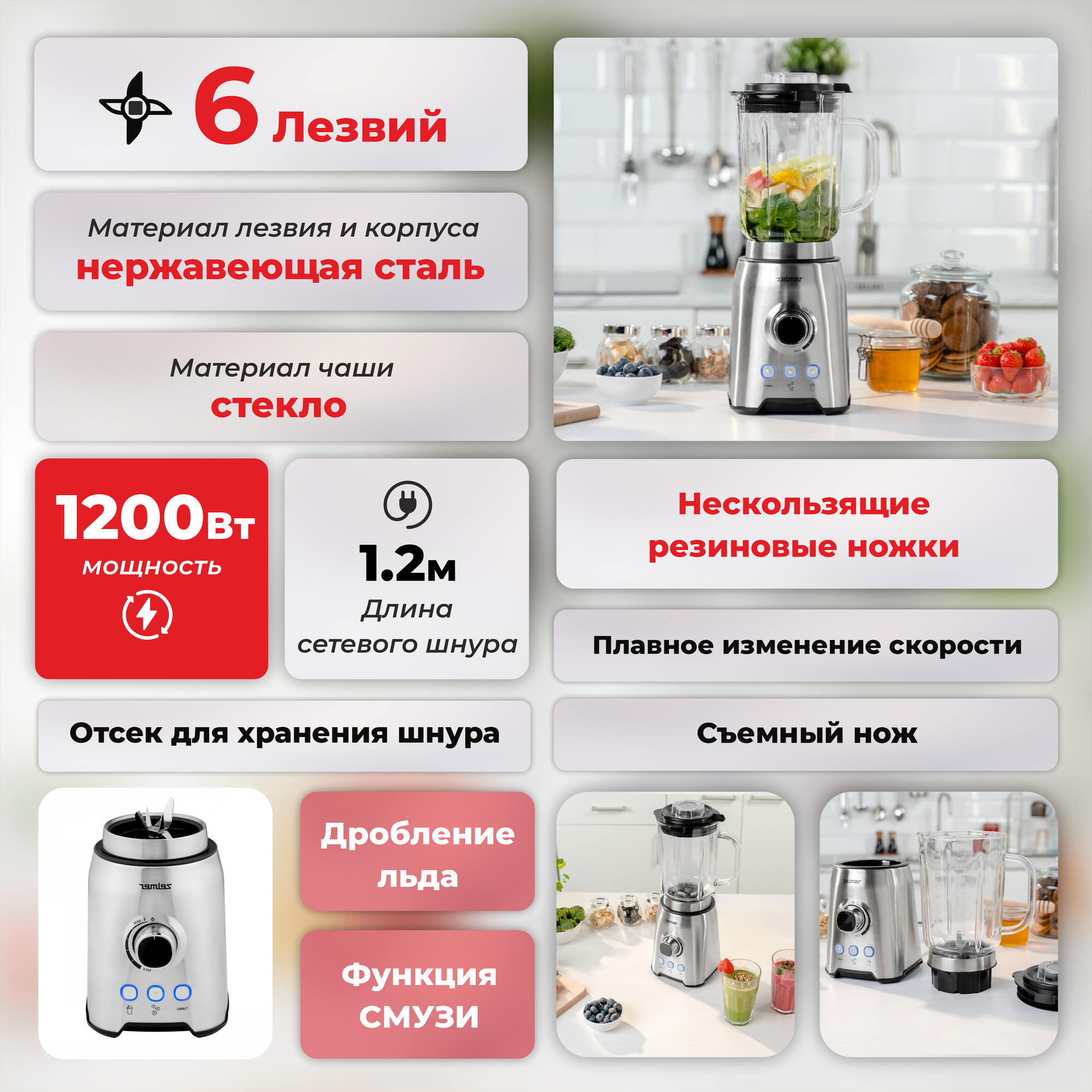 | Плюсы: | Красивый блендер, прочный стеклянный кувшин. |