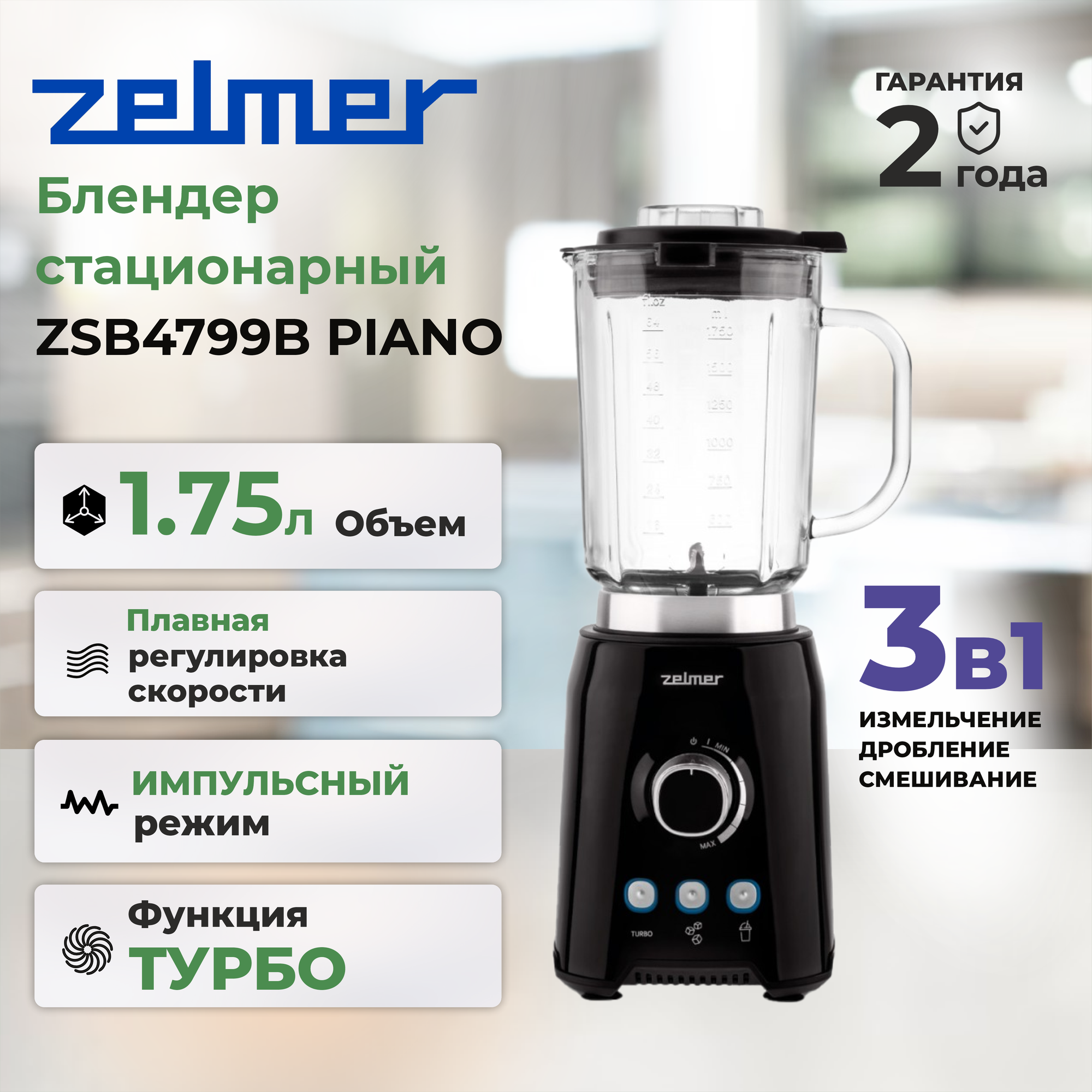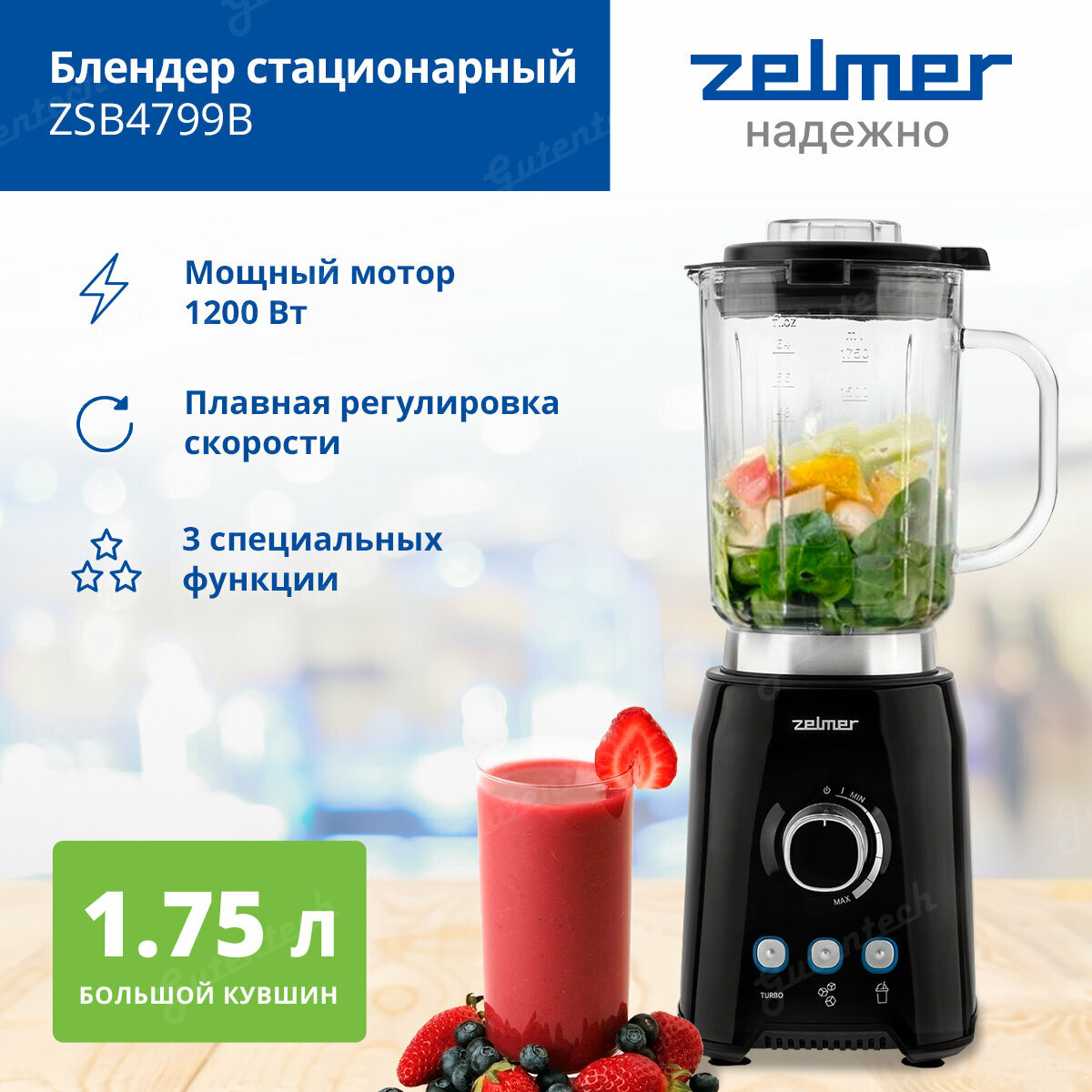 70205150P / Блендер стационарный Zelmer ZSB4799B черный [1200 Вт, 1750 мл, турборежим, стакан]