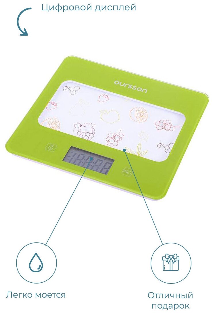 Кухонные весы Oursson KS0501GD/GA Зеленое яблоко интересное: