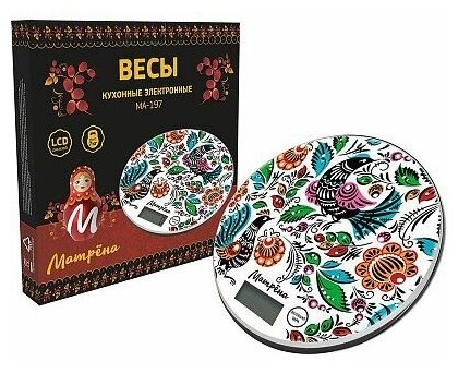 Весы кухонные электронные матрёна МА-197, 7 кг, городецкая роспись