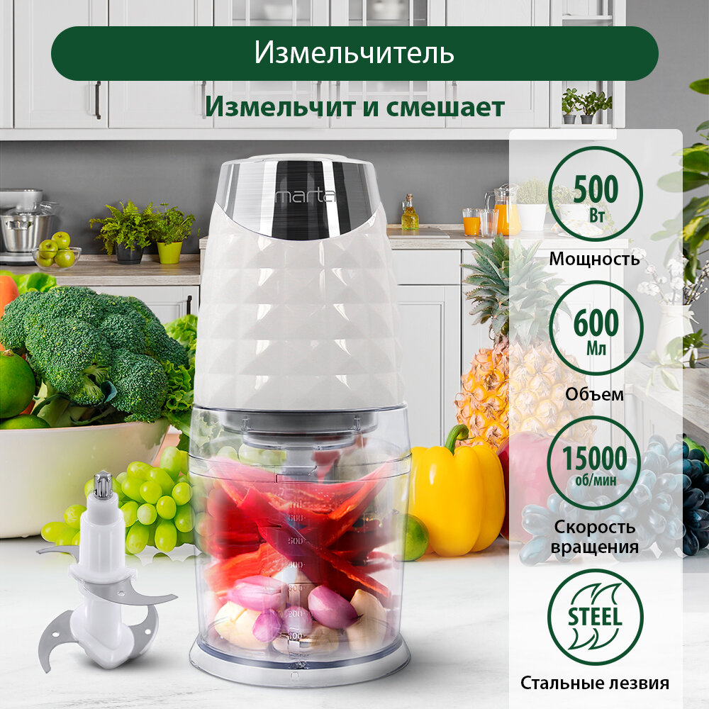 MARTA MT-2074 белый жемчуг/хром измельчитель интересное:
