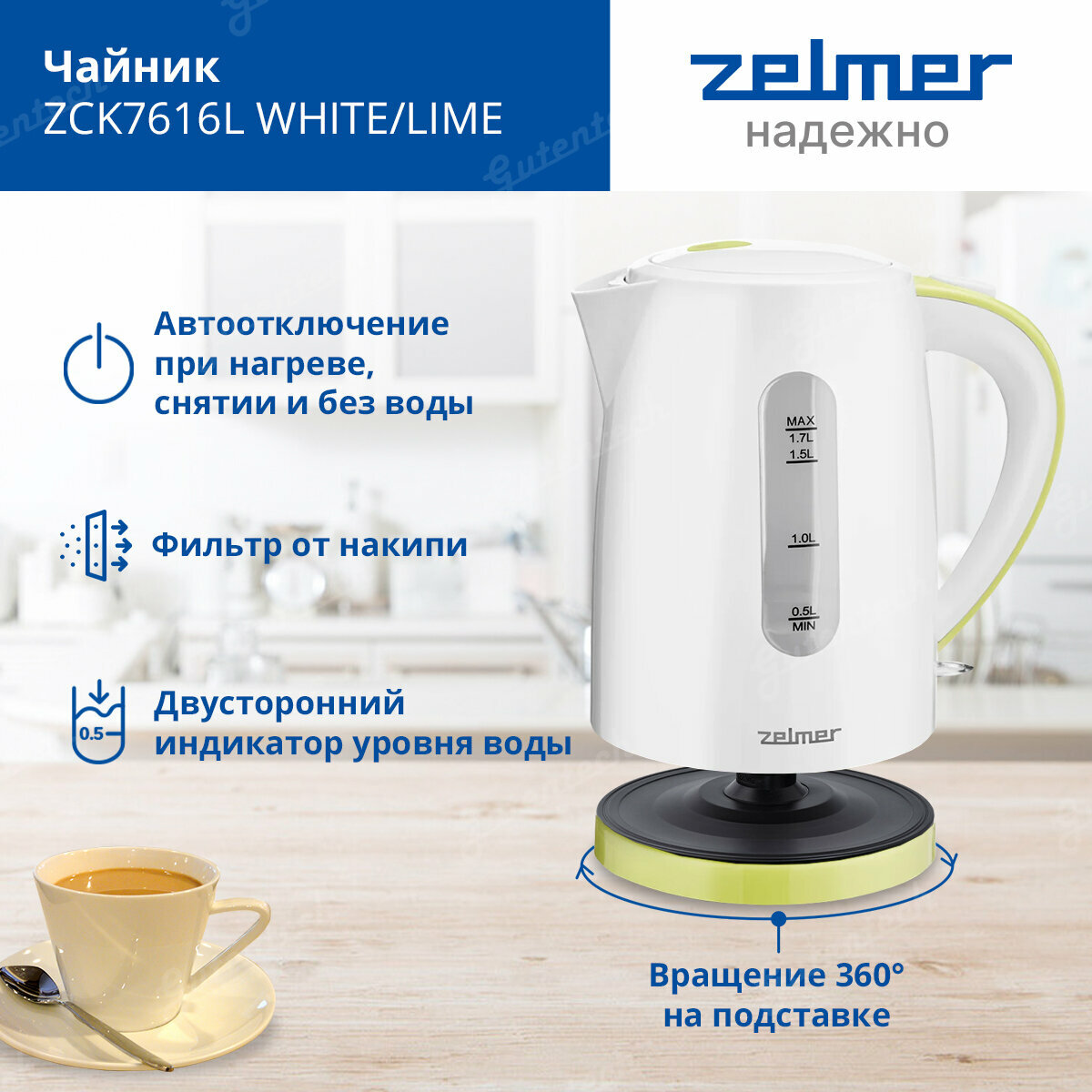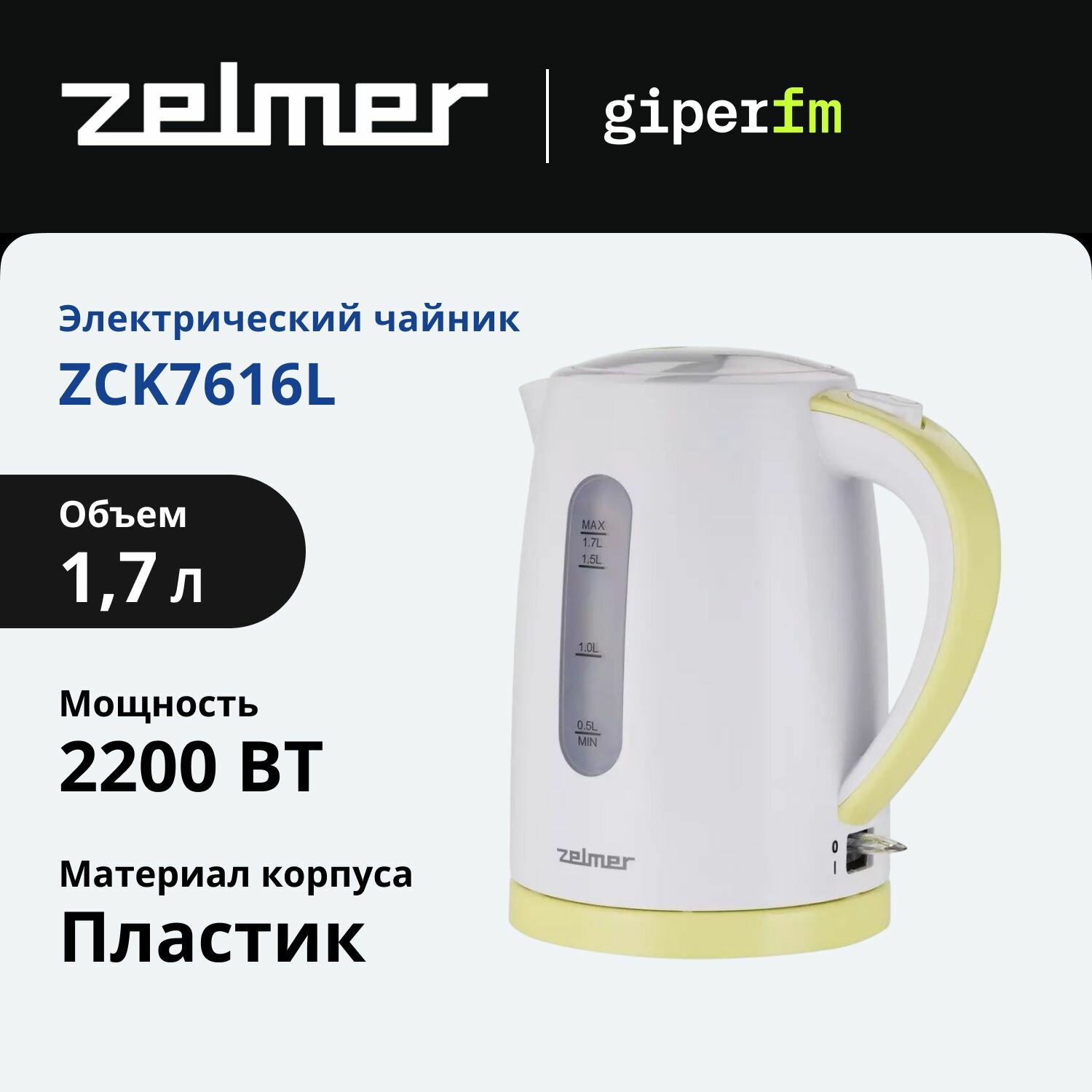 Чайник ZELMER ZCK7616L WHITE/LIME .