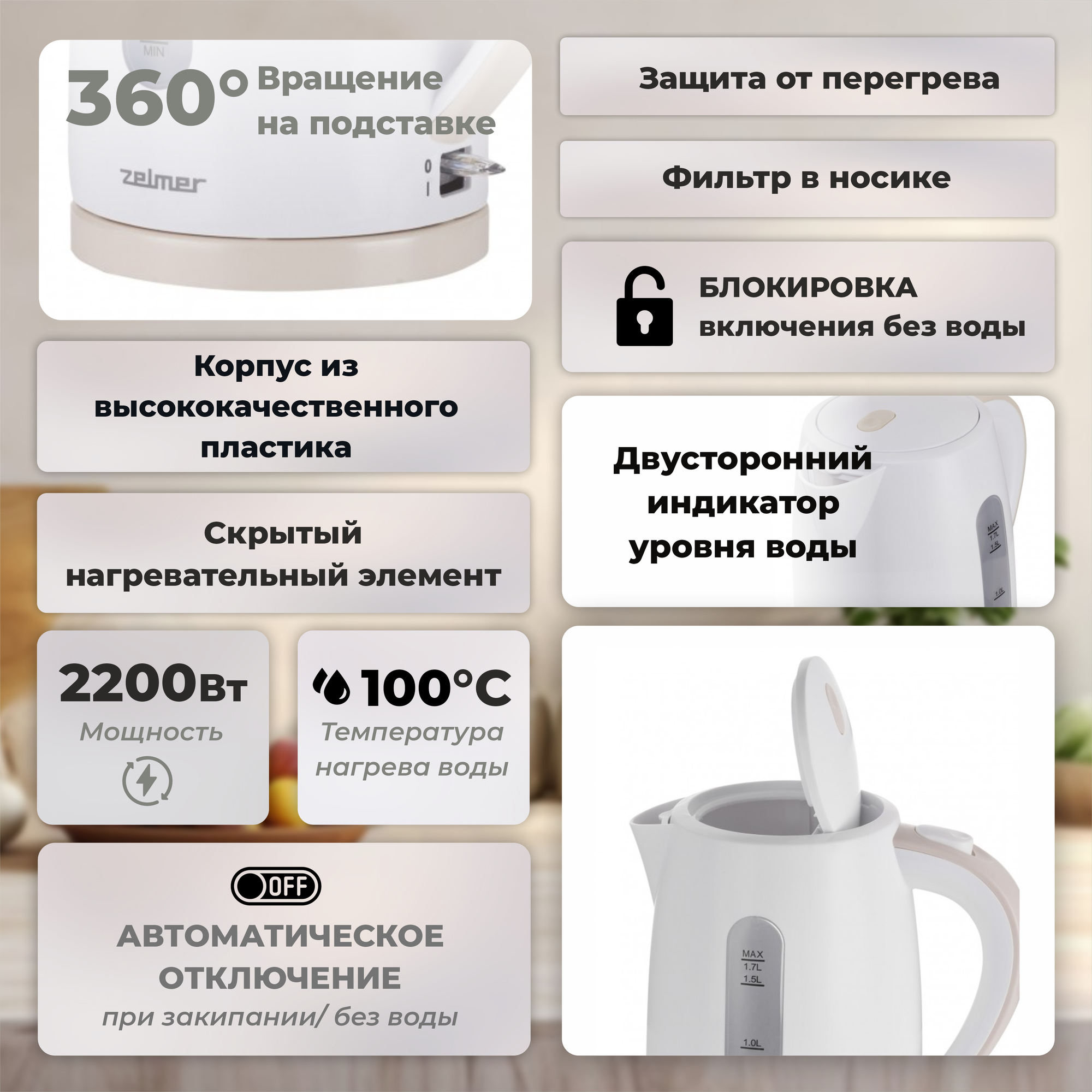 Чайник ZCK7616I WHITE/IVORY ZELMER