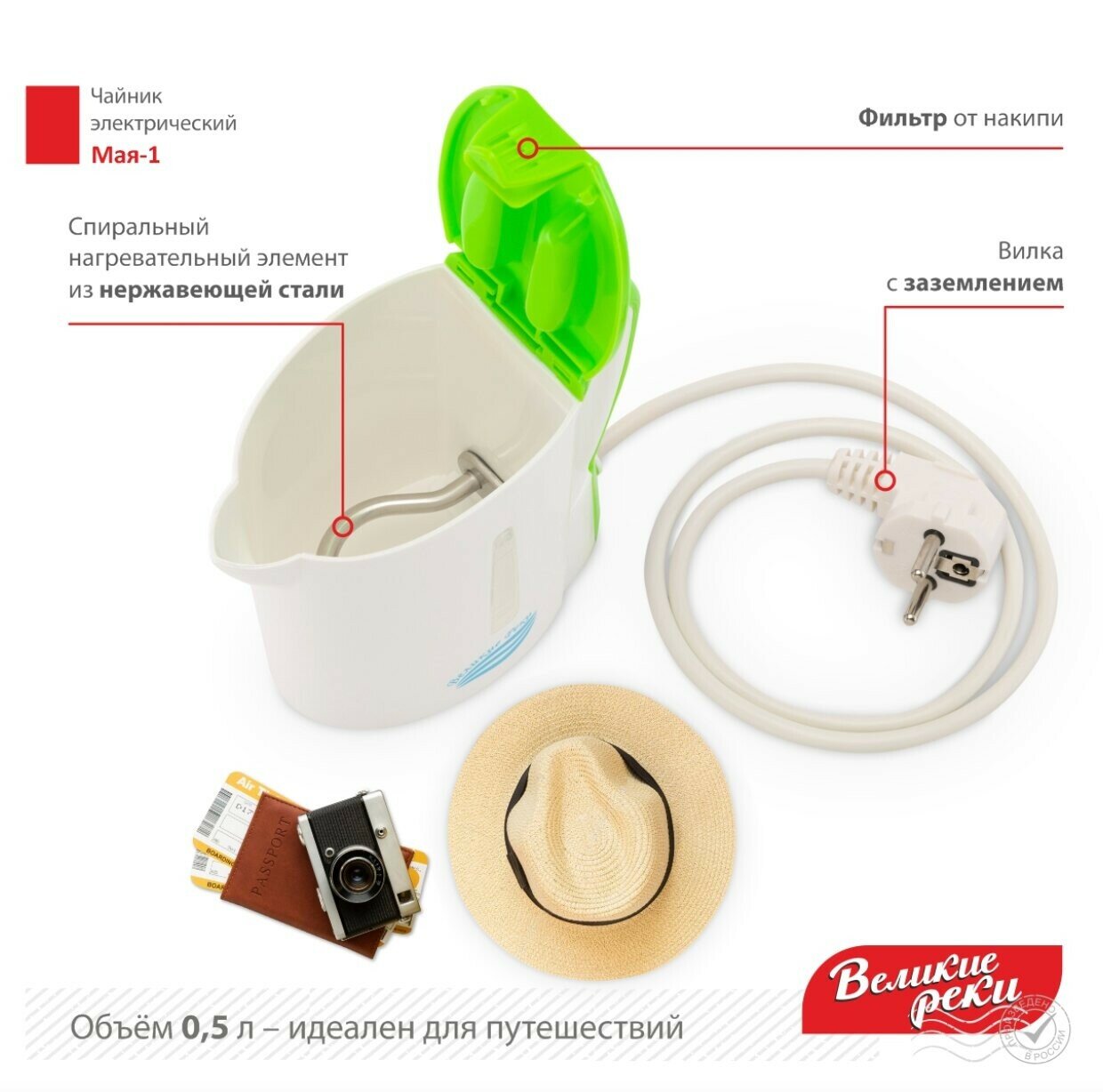 Чайник электрический Великие Реки Мая-1 белый, 0,5 л, пластик, 500 Вт .