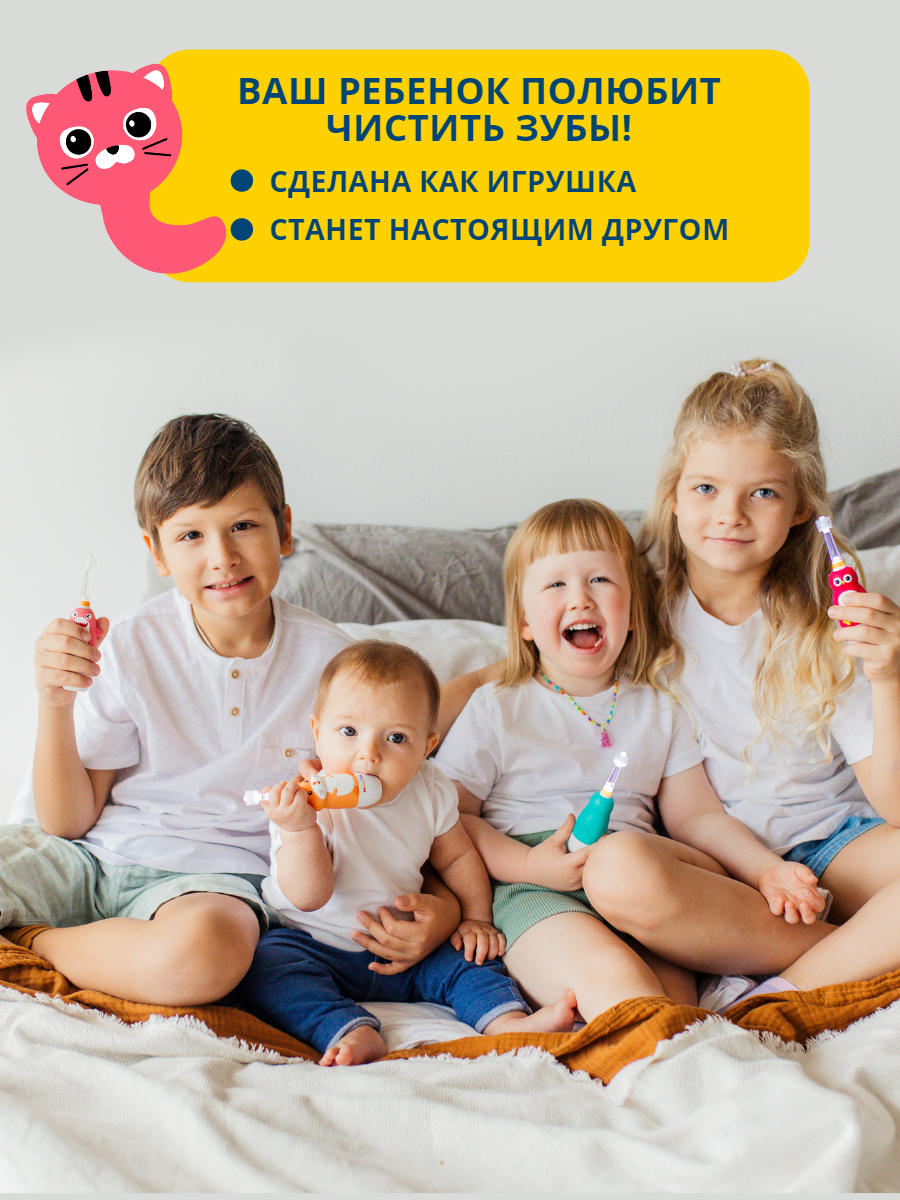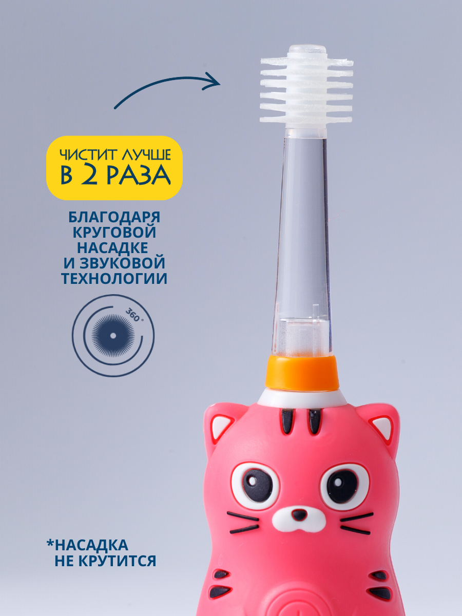 Купить Электрическая детская звуковая зубная щетка котенок В наборе MEGA TEN megaten KIDS SONIC
